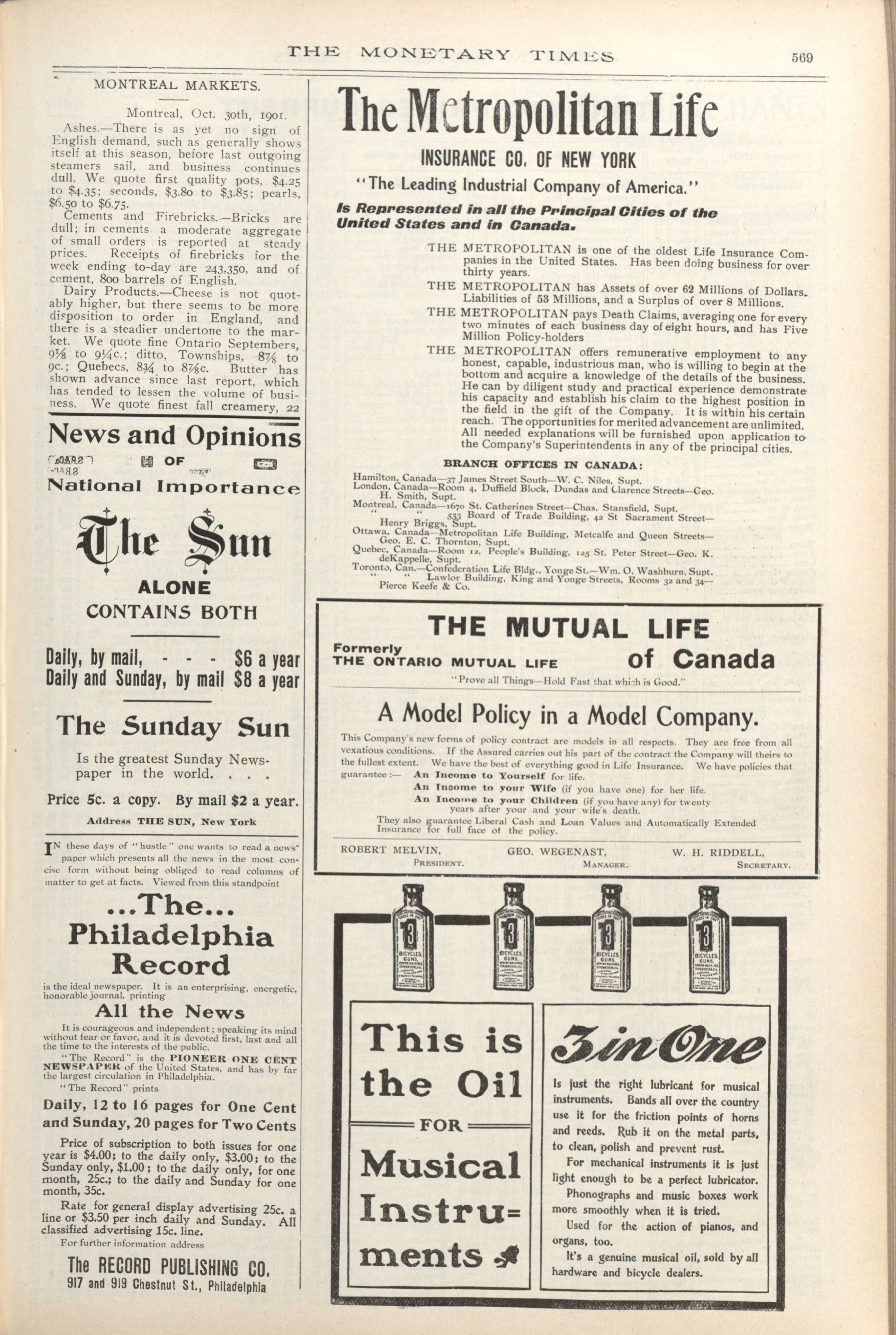 - The Monetary Times, trade review and insurance chronicle. : Vol. XXXV No. 18 (November 1, 1901)