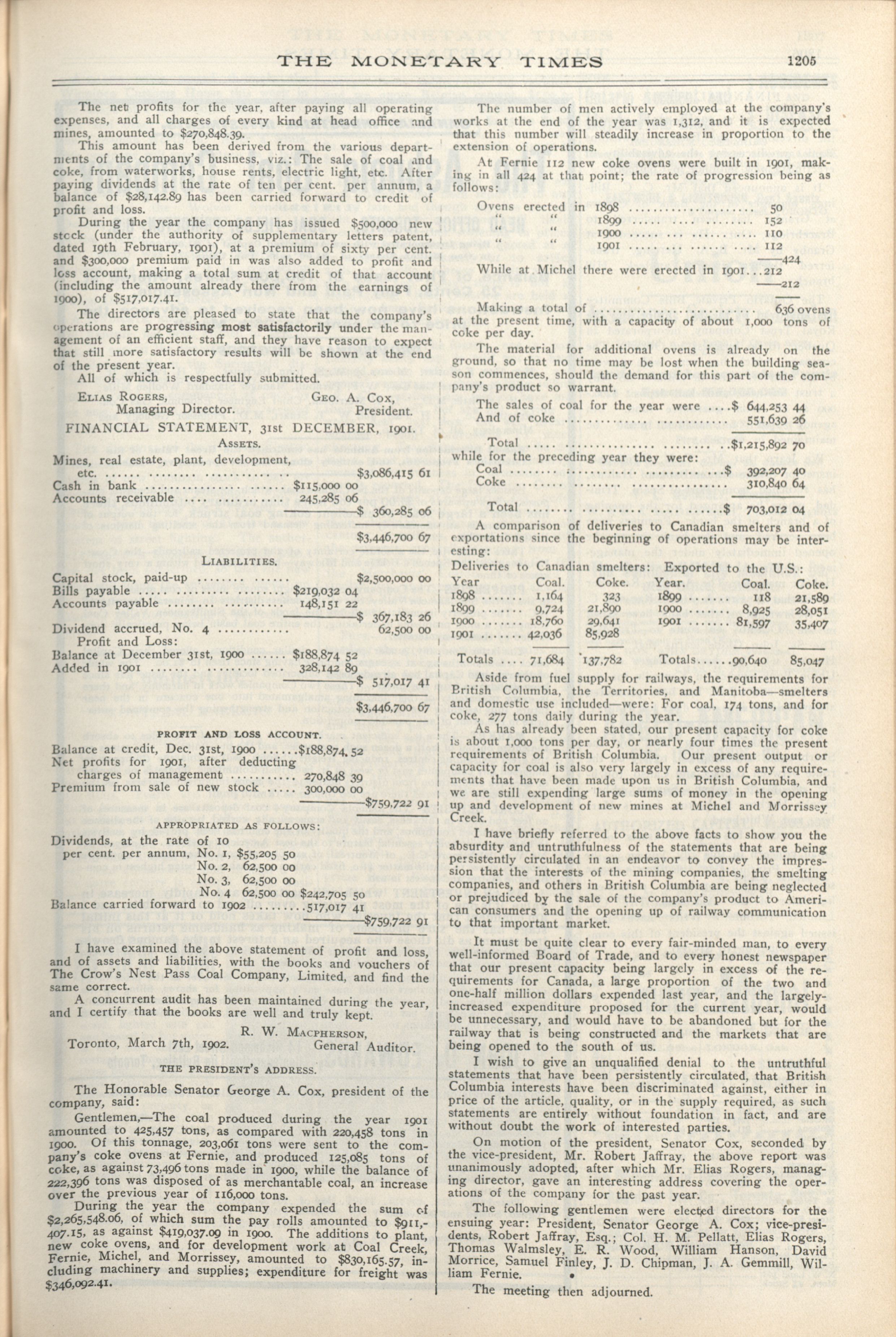 - The Monetary Times, trade review and insurance chronicle. : Vol. XXXV No. 37 (March 14, 1902)