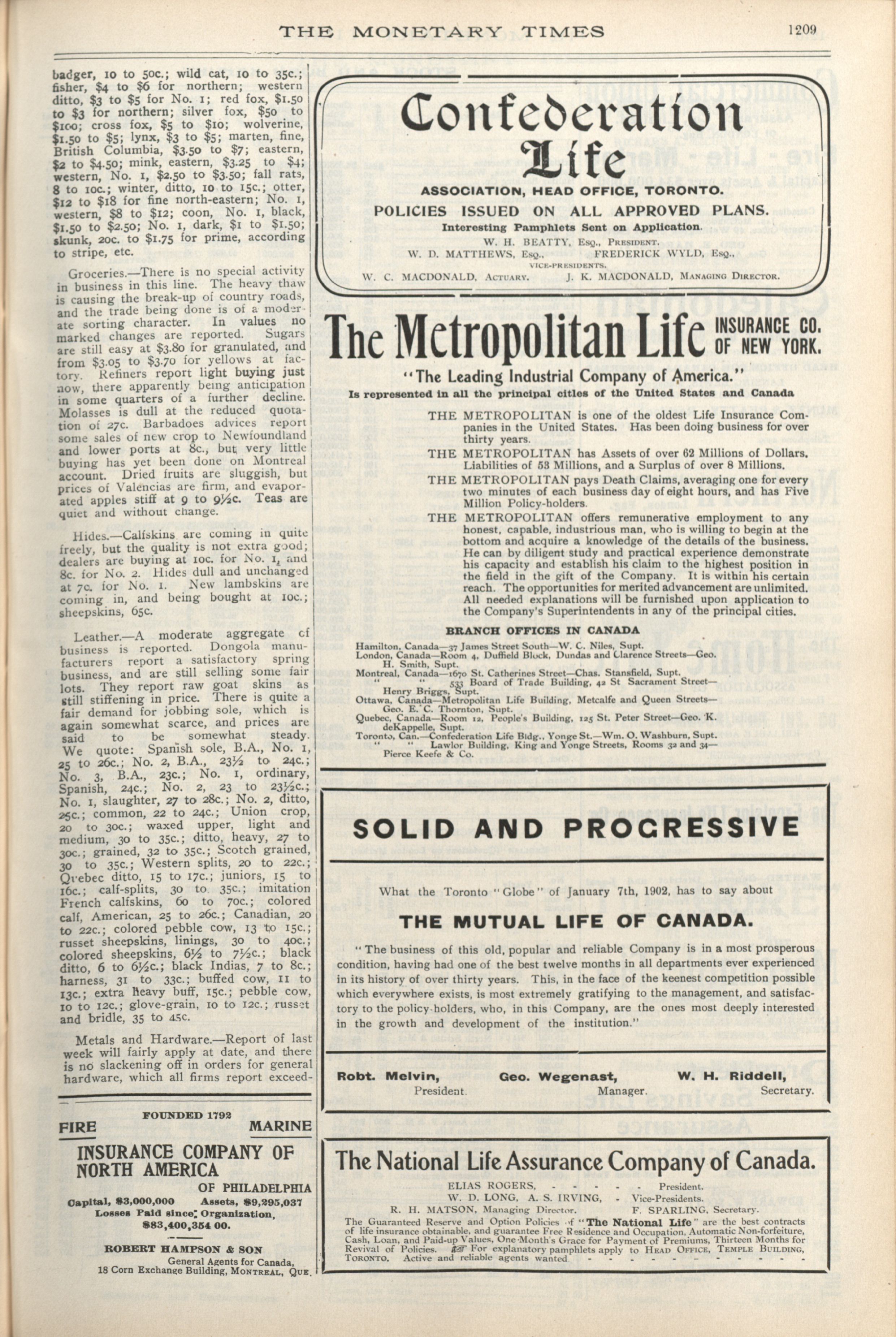 - The Monetary Times, trade review and insurance chronicle. : Vol. XXXV No. 37 (March 14, 1902)