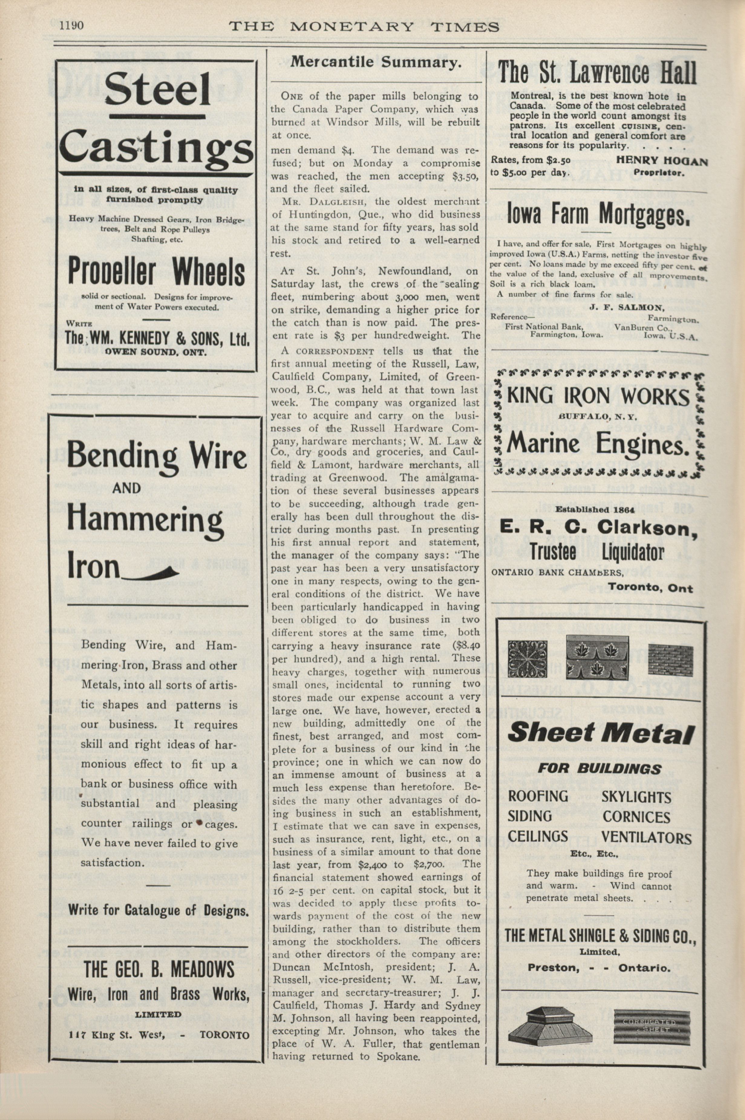 - The Monetary Times, trade review and insurance chronicle. : Vol. XXXV No. 37 (March 14, 1902)