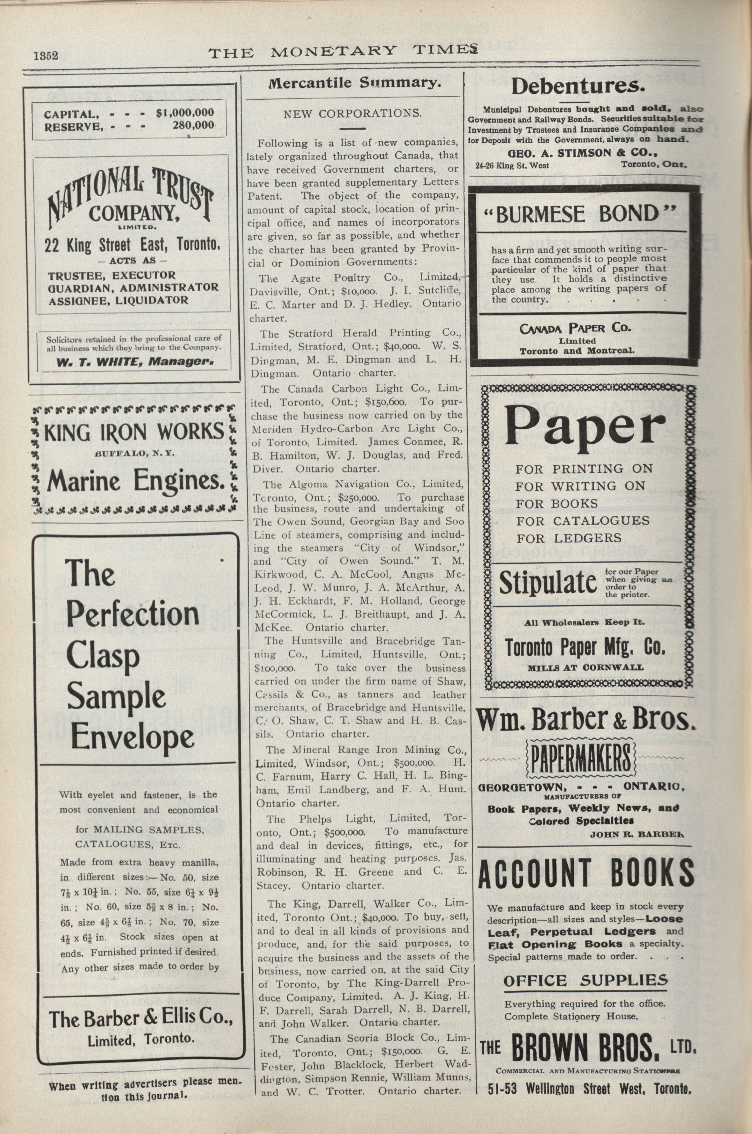 - The Monetary Times, trade review and insurance chronicle. : Vol. XXXV No. 42 (April 18, 1902)