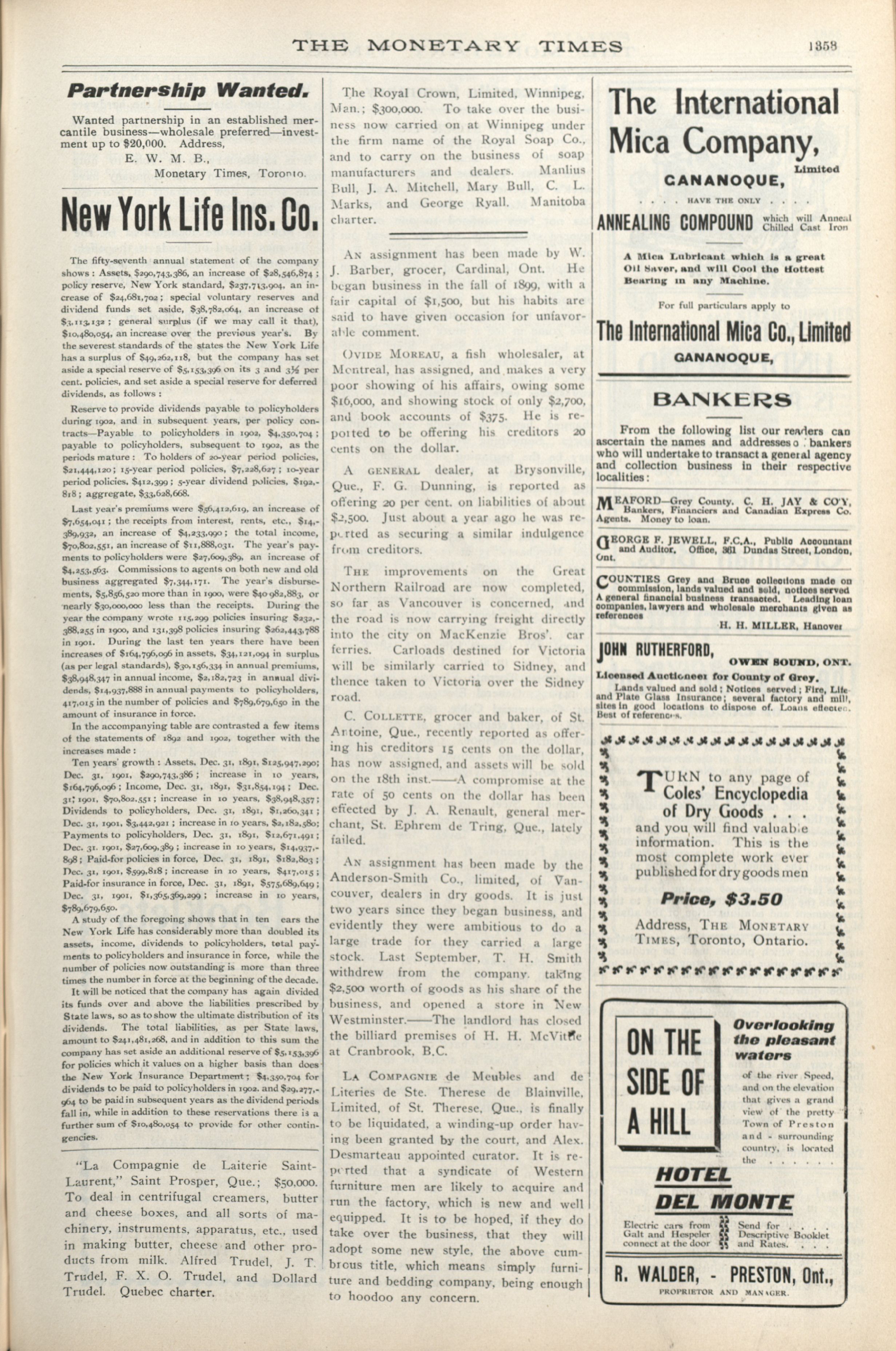 - The Monetary Times, trade review and insurance chronicle. : Vol. XXXV No. 42 (April 18, 1902)
