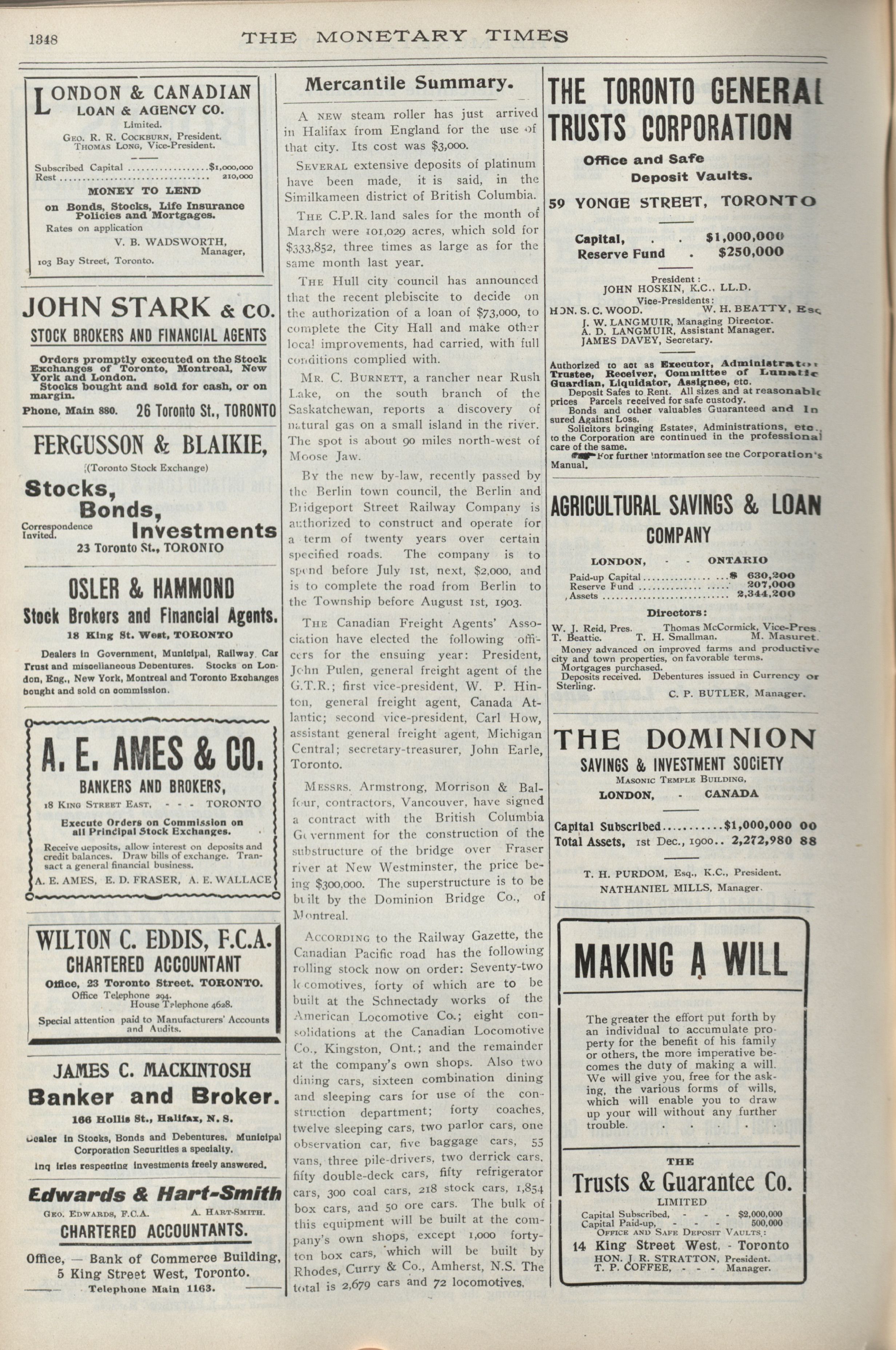 - The Monetary Times, trade review and insurance chronicle. : Vol. XXXV No. 42 (April 18, 1902)