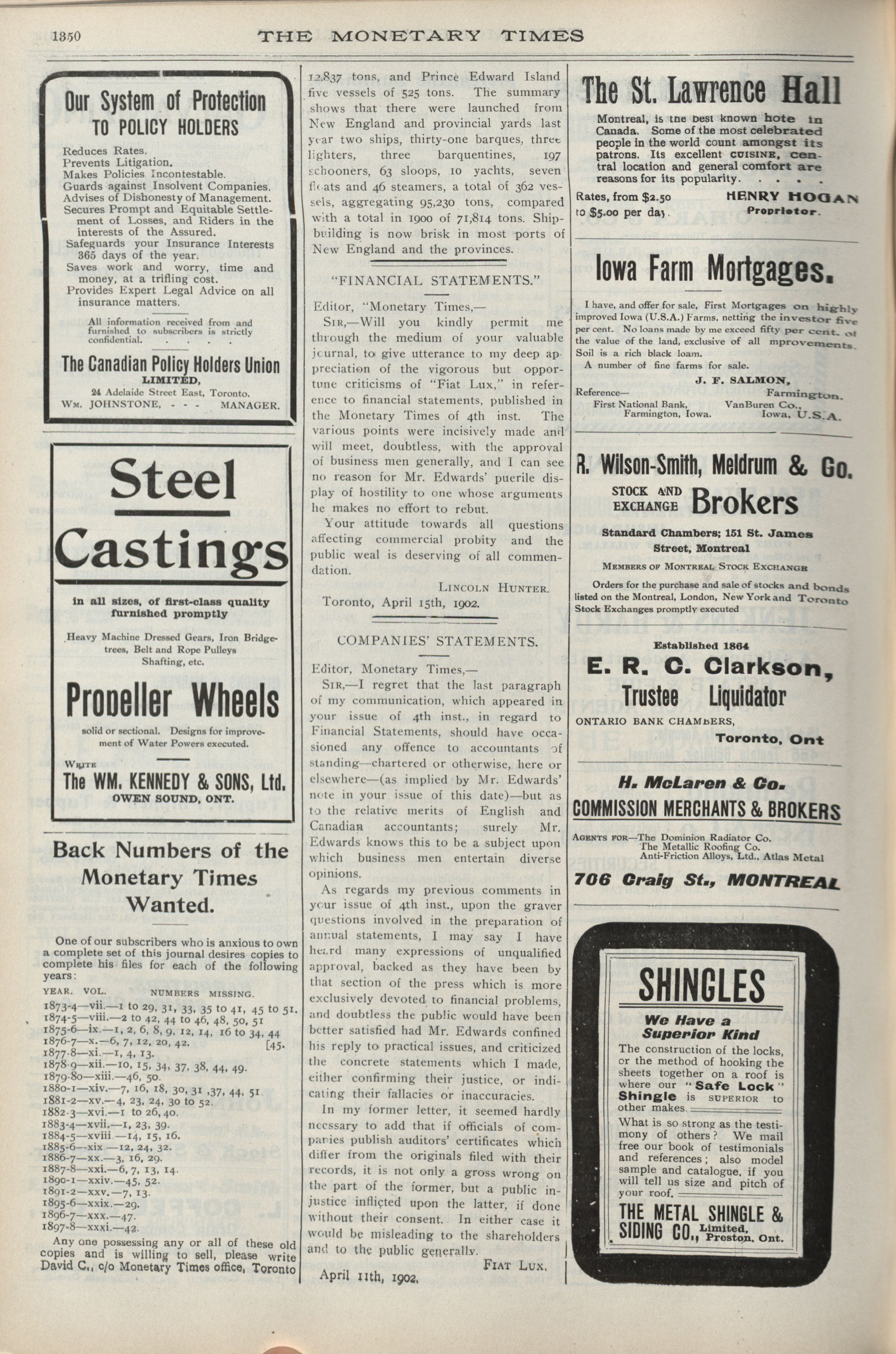 - The Monetary Times, trade review and insurance chronicle. : Vol. XXXV No. 42 (April 18, 1902)