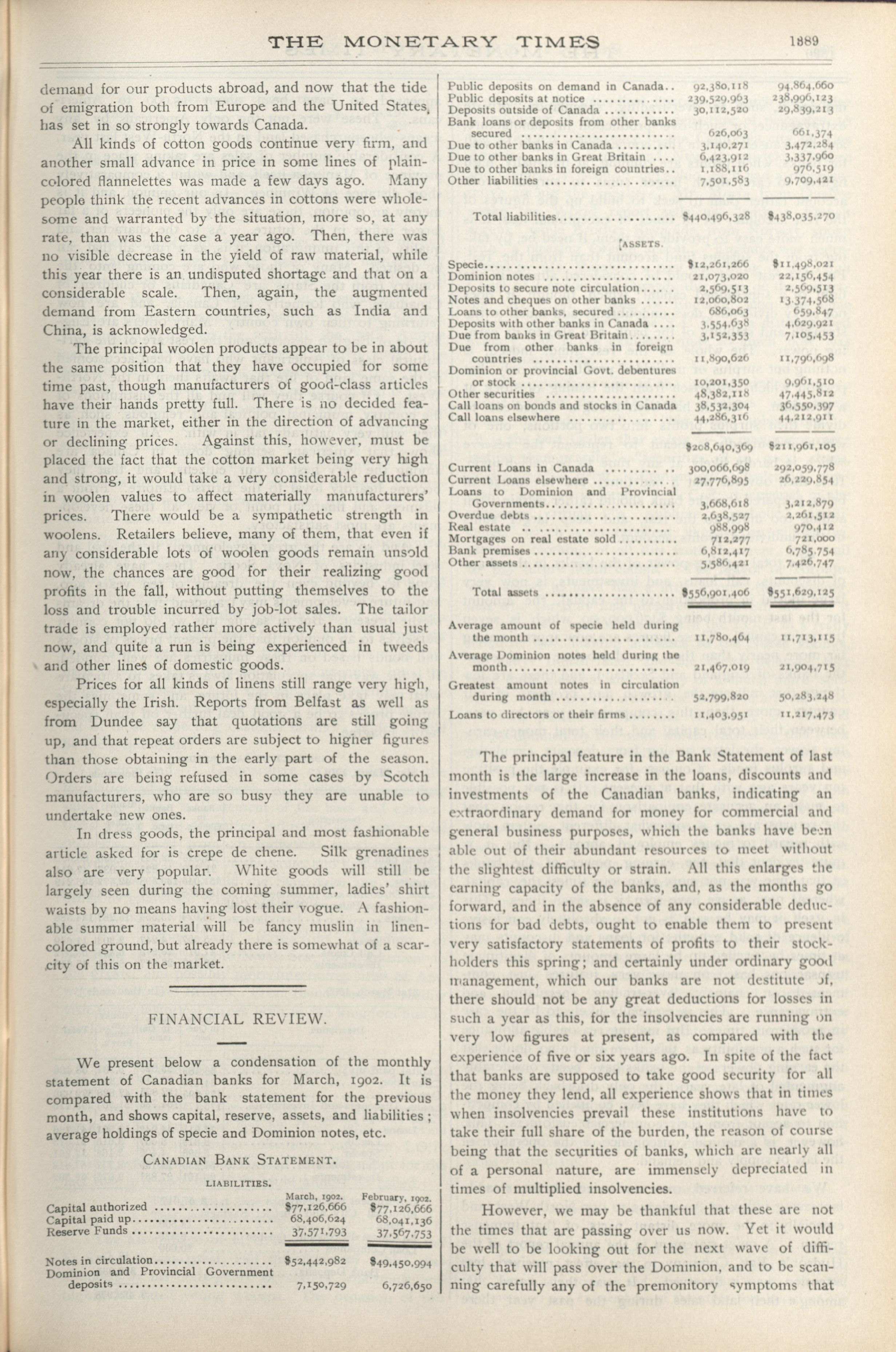 - The Monetary Times, trade review and insurance chronicle. : Vol. XXXV No. 43 (April 25, 1902)