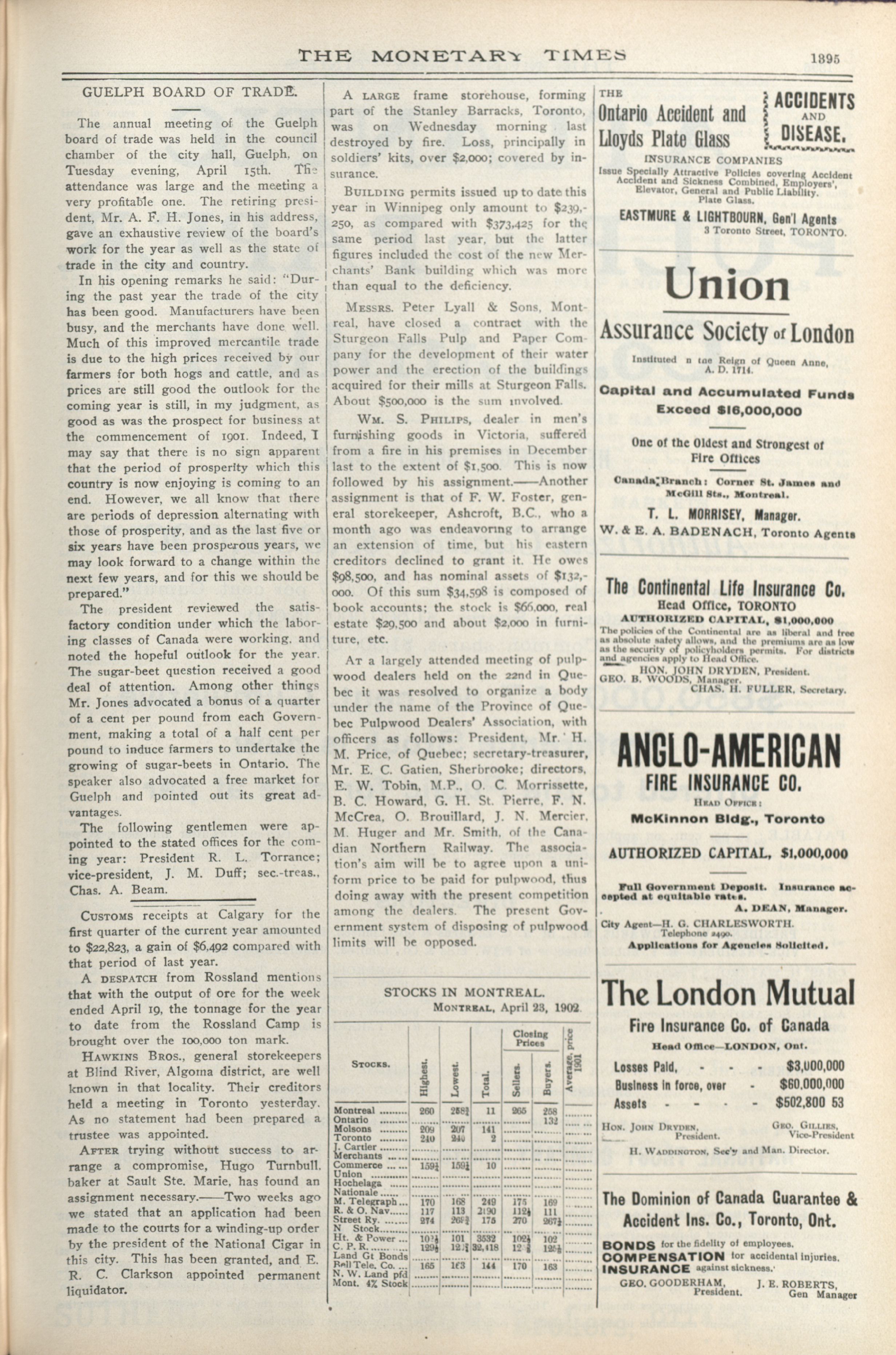 - The Monetary Times, trade review and insurance chronicle. : Vol. XXXV No. 43 (April 25, 1902)