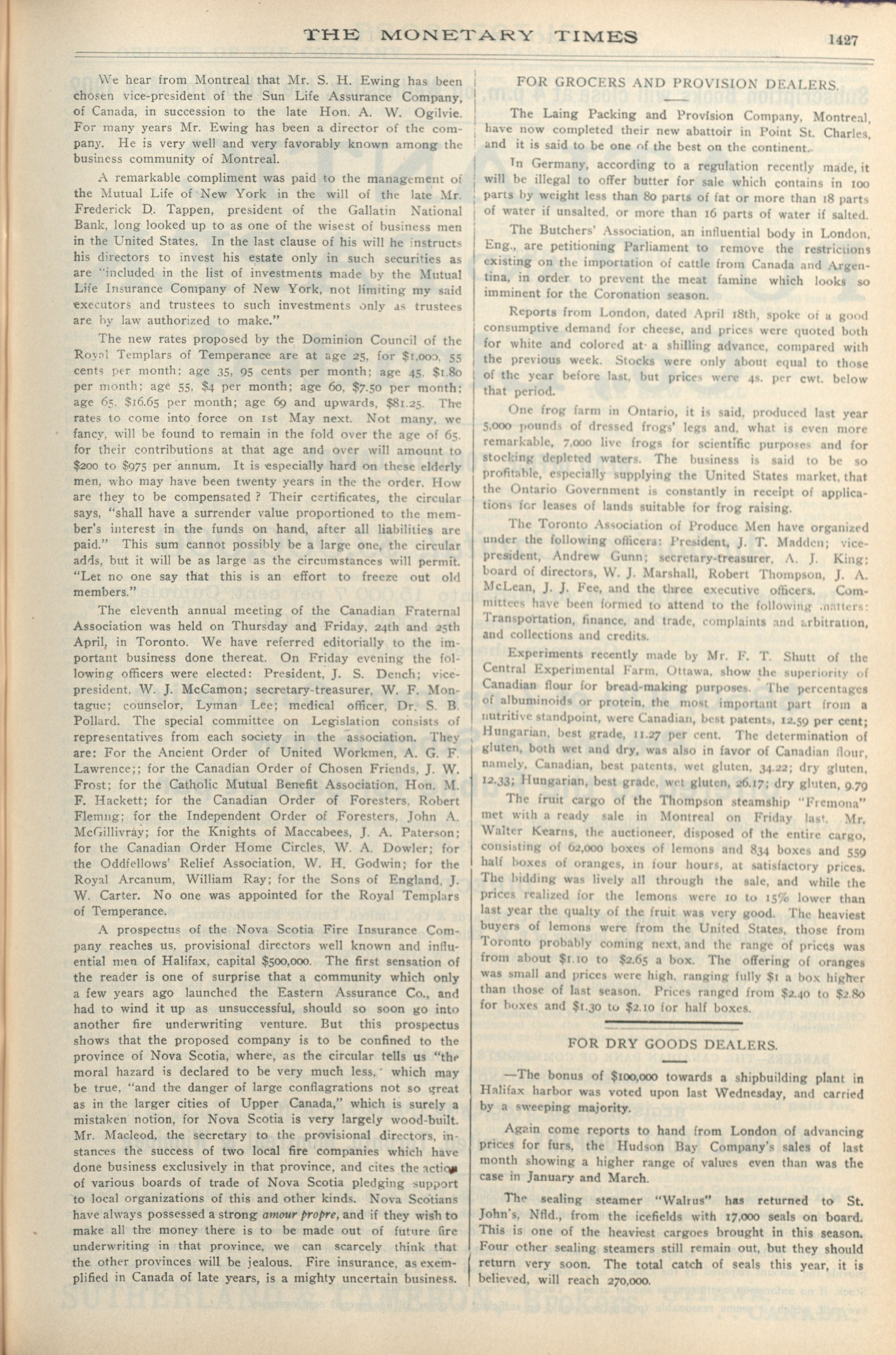 The Monetary Times, trade review and insurance chronicle. : Vol. XXXV No. 44 (May 2, 1902)