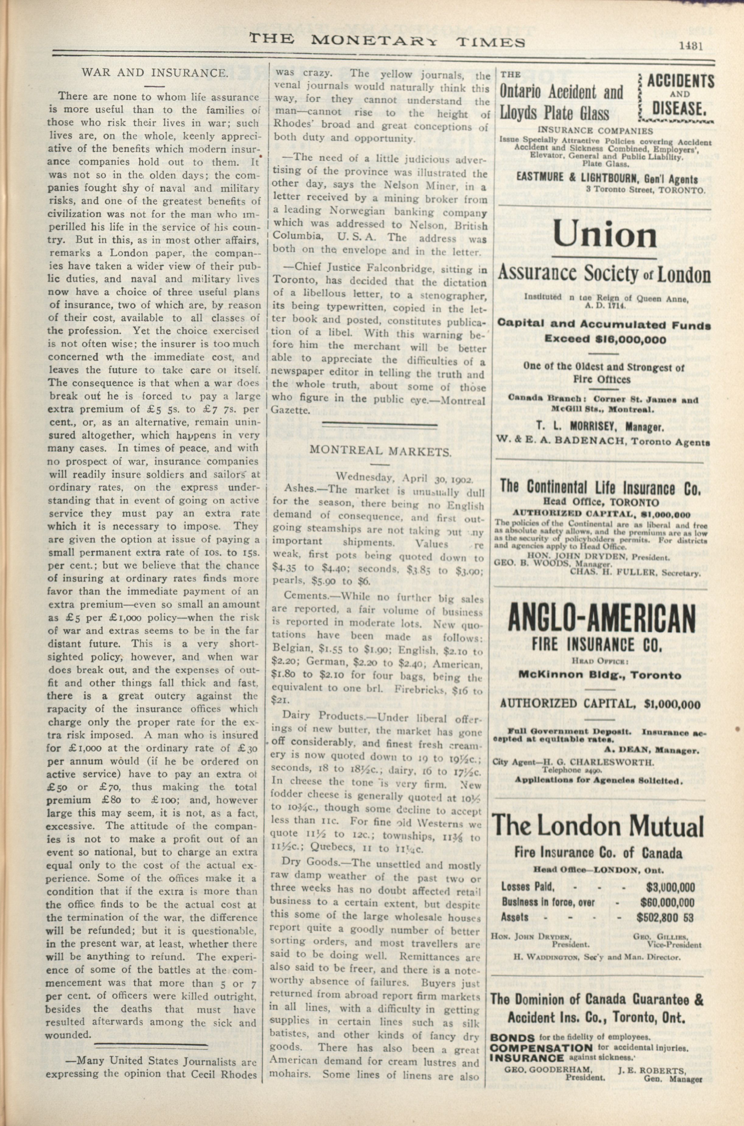 The monetary times, trade review and insurance chronicle : Vol. XXXV No. 44 (May 2, 1902)