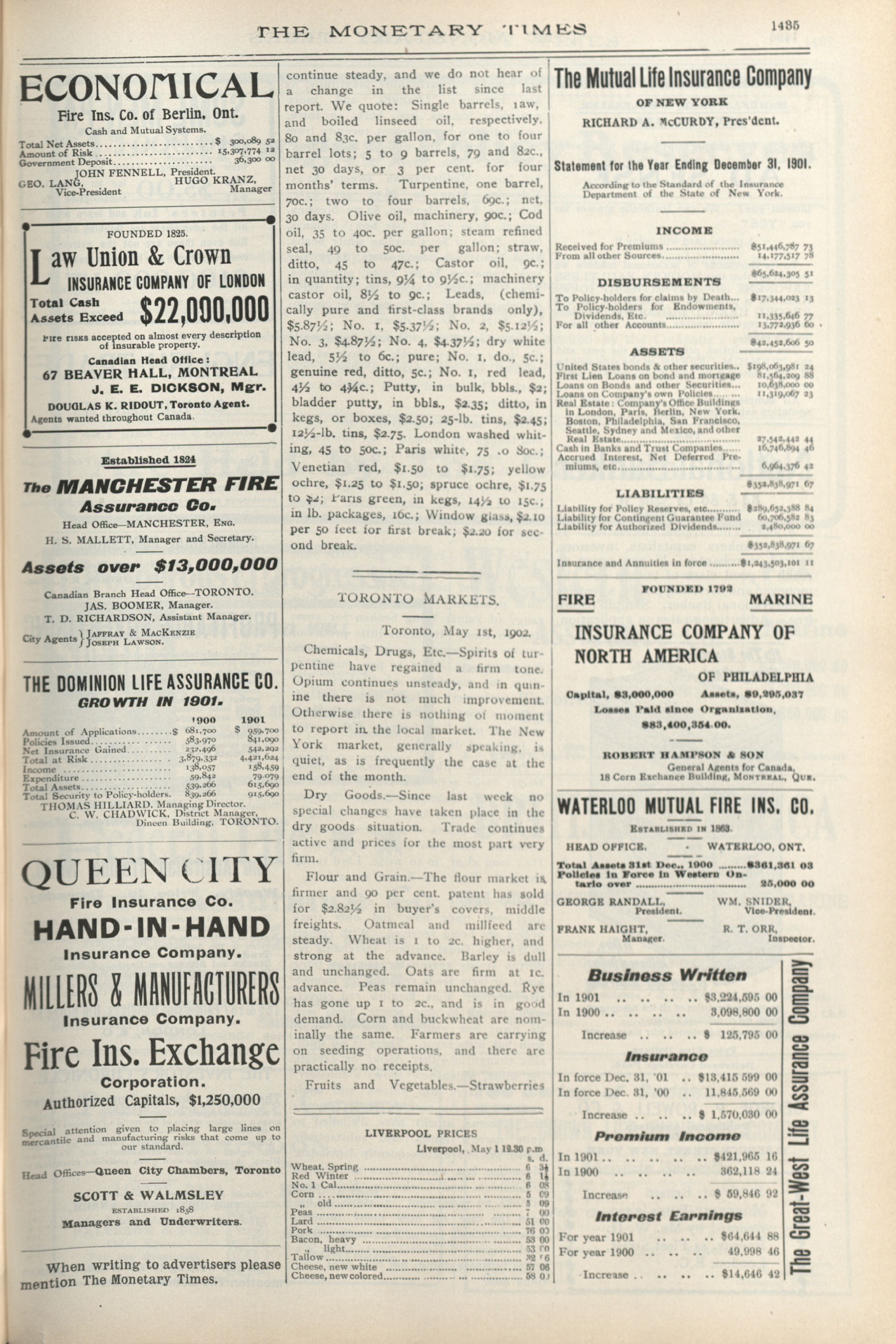 The Monetary Times, trade review and insurance chronicle. : Vol. XXXV No. 44 (May 2, 1902)