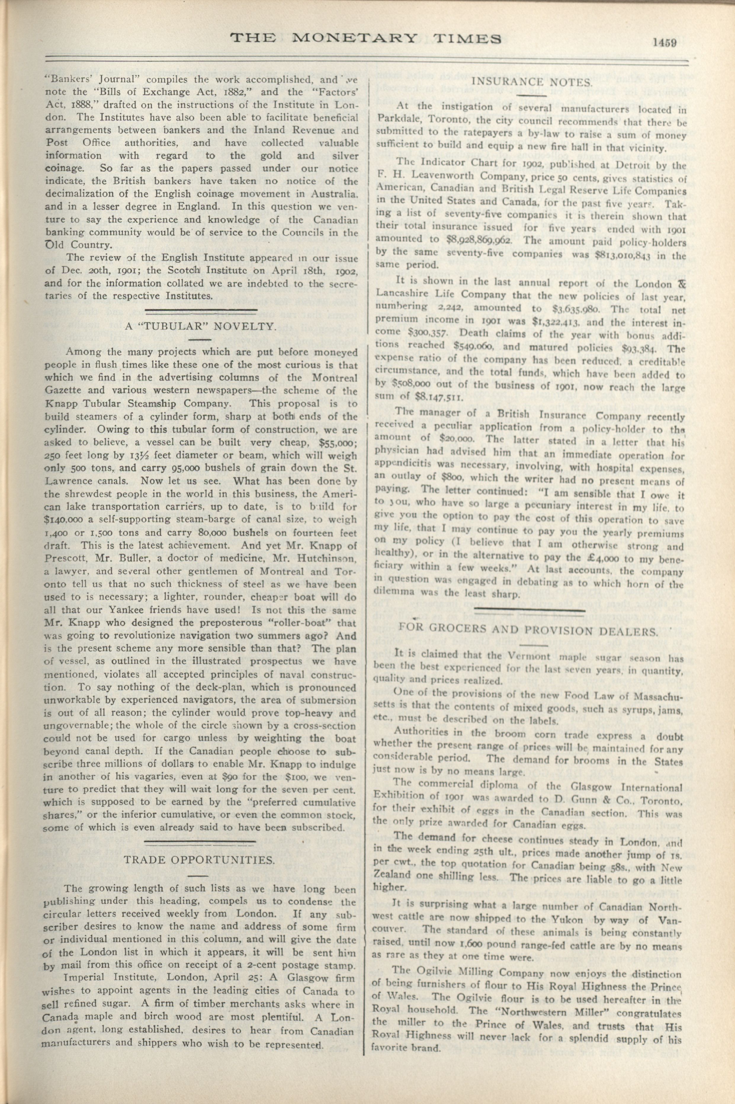 - The Monetary Times, trade review and insurance chronicle. : Vol. XXXV No. 45 (May 9, 1902)