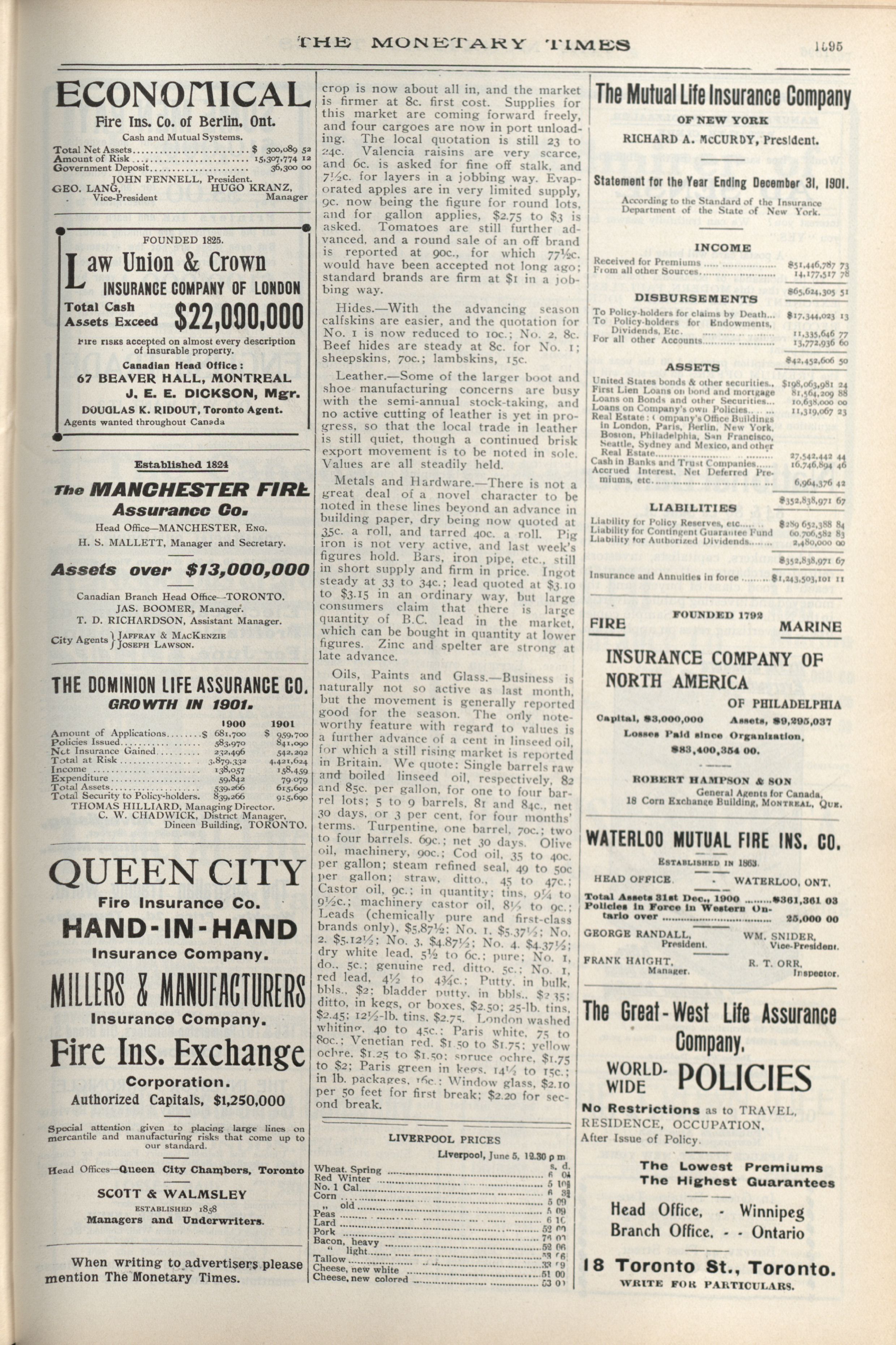 - The Monetary Times, trade review and insurance chronicle. : Vol. XXXV No. 49 (June 6, 1902)