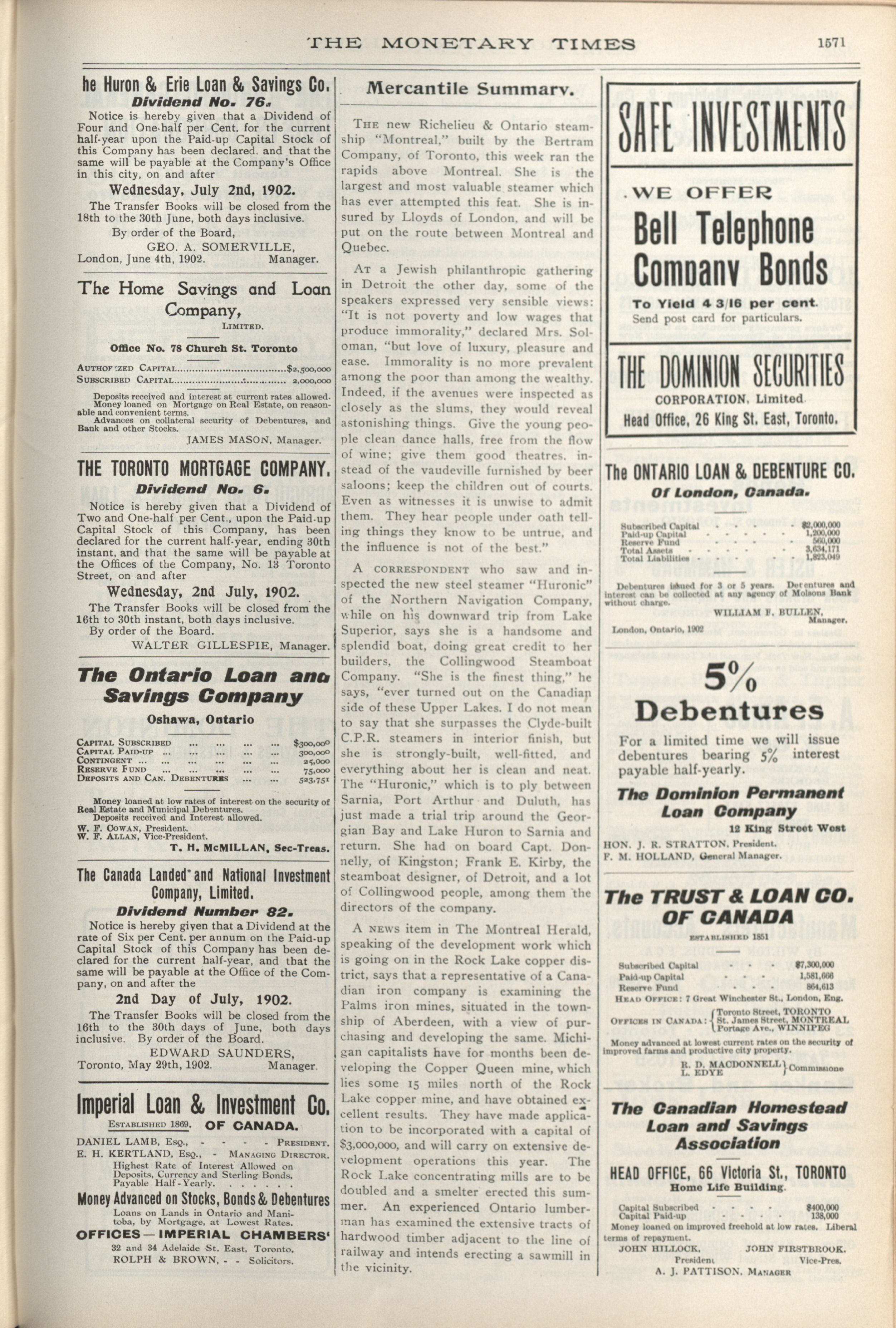 The Monetary Times, trade review and insurance chronicle. : Vol. XXXV No. 49 (June 6, 1902)
