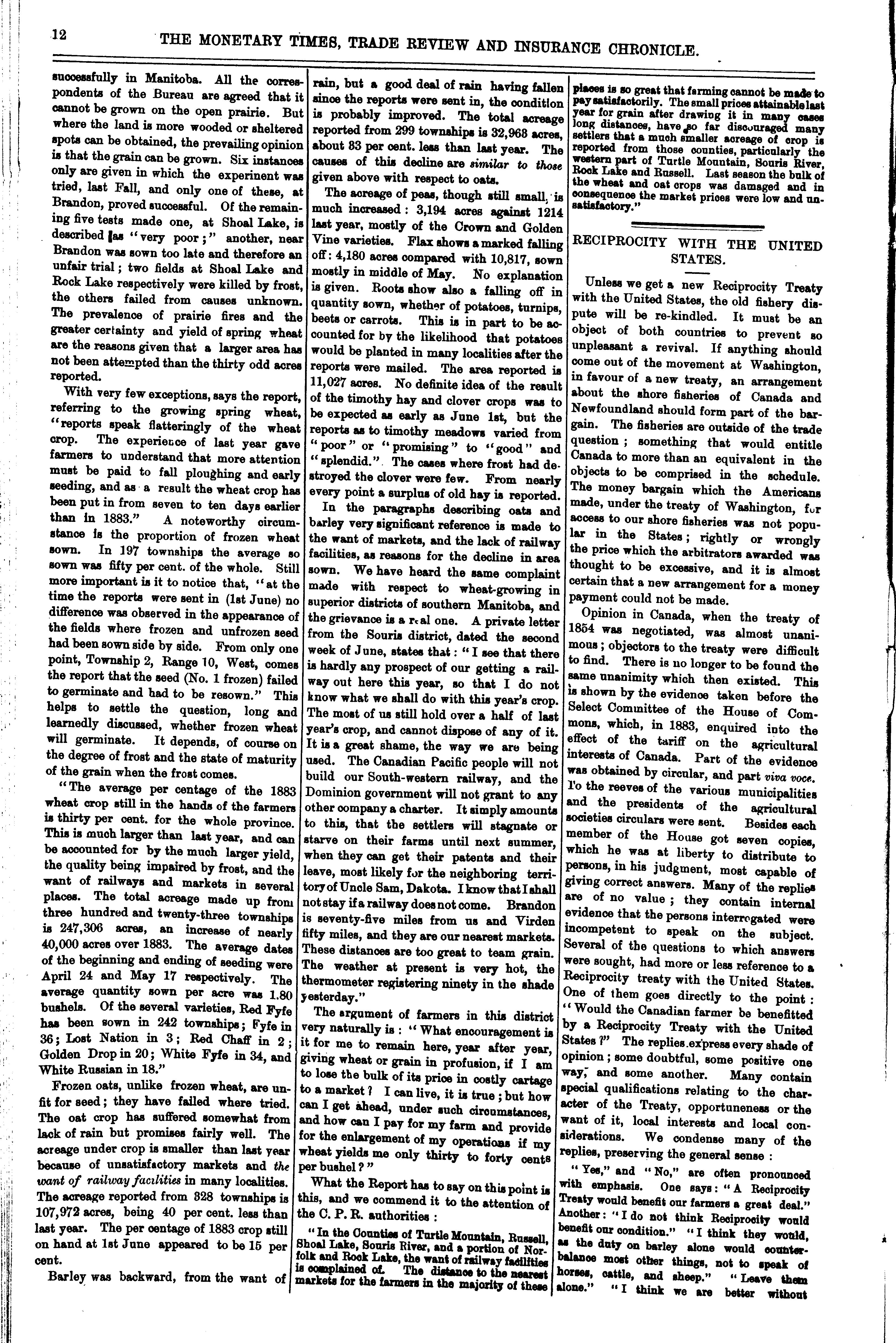 The monetary times, trade review and insurance chronicle : [Vol. 18, no. 1 (July 4, 1884)]