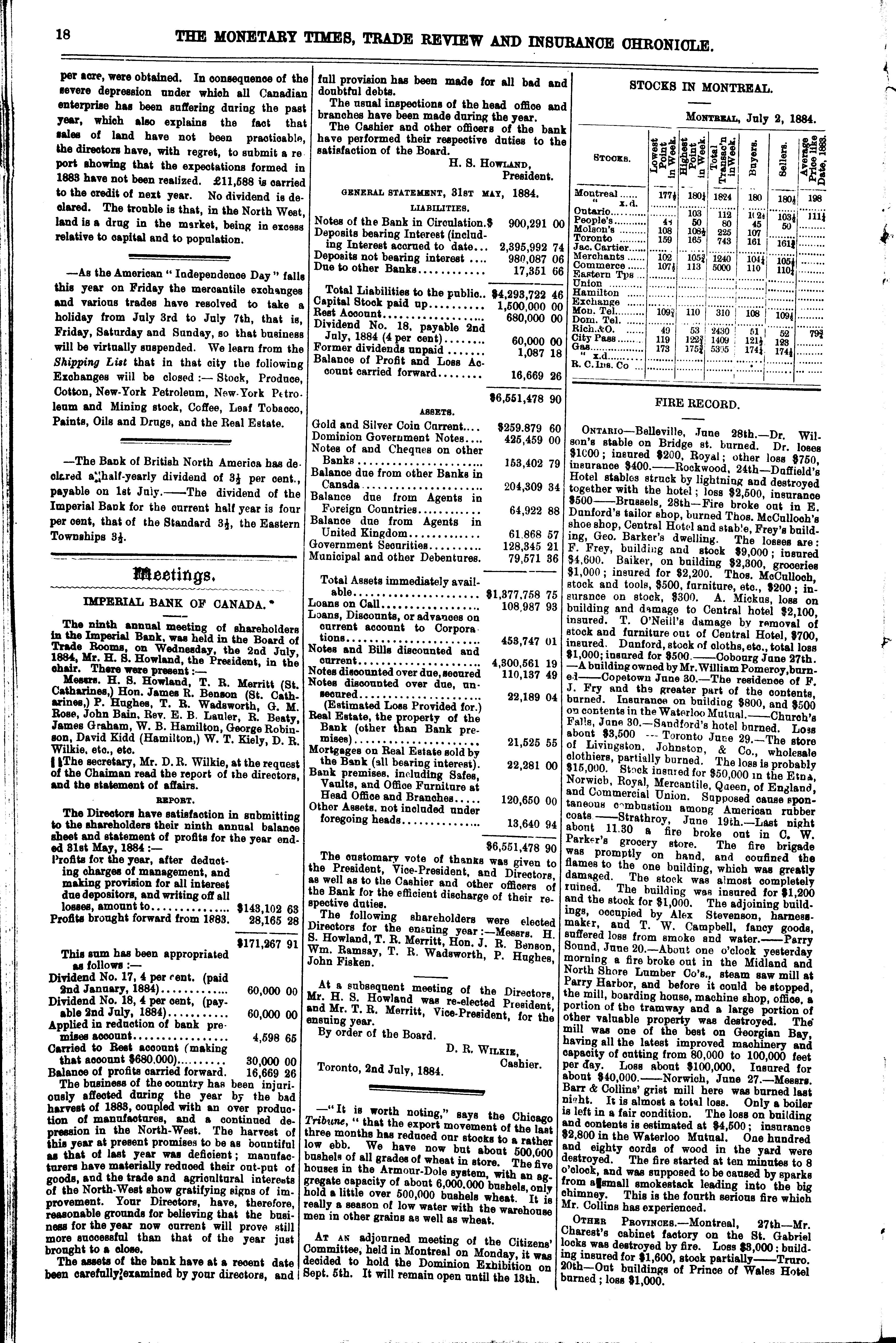 The monetary times, trade review and insurance chronicle : [Vol. 18, no. 1 (July 4, 1884)]