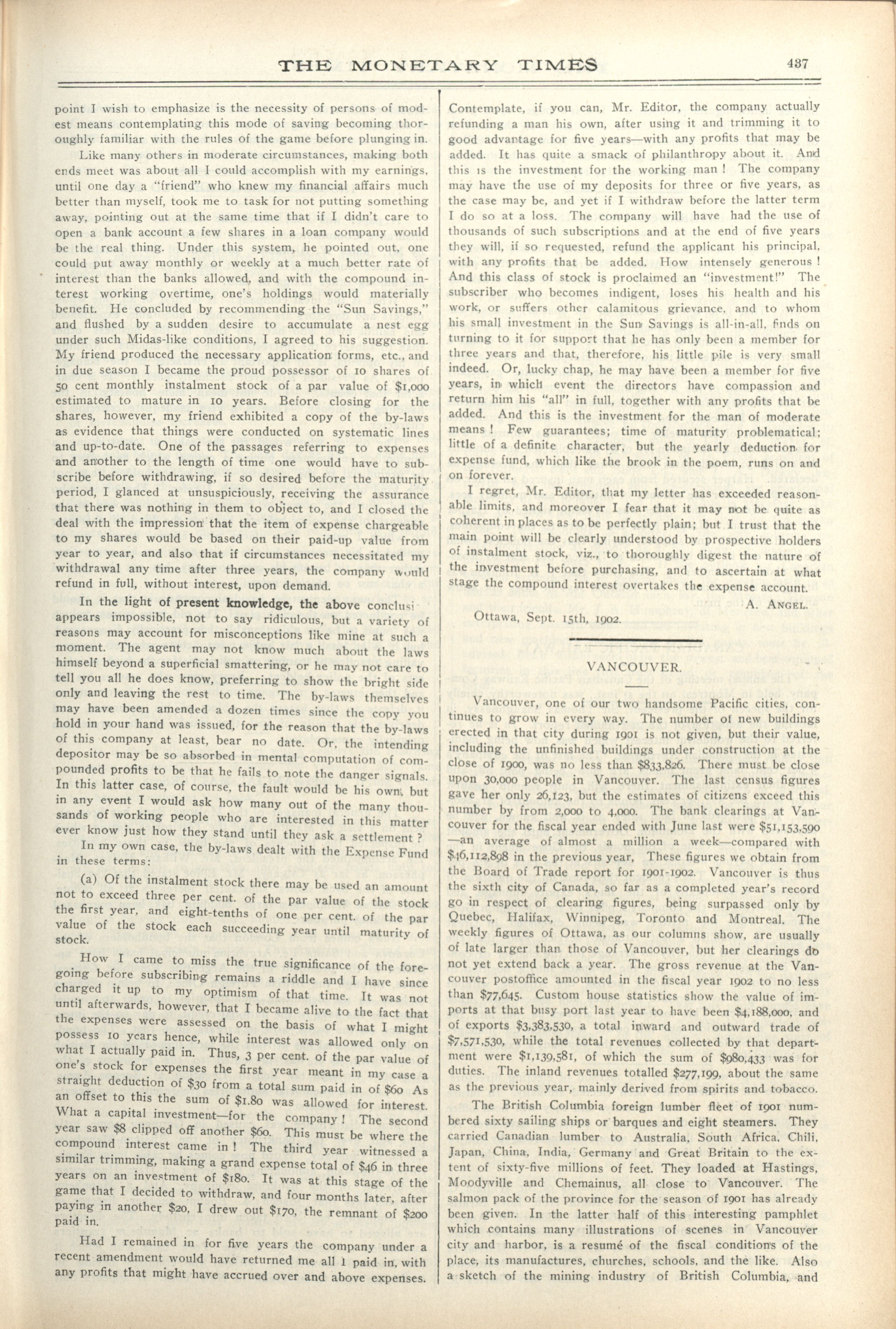 - The Monetary Times, trade review and insurance chronicle. : 36th Year. No. 14. (October 3, 1902)