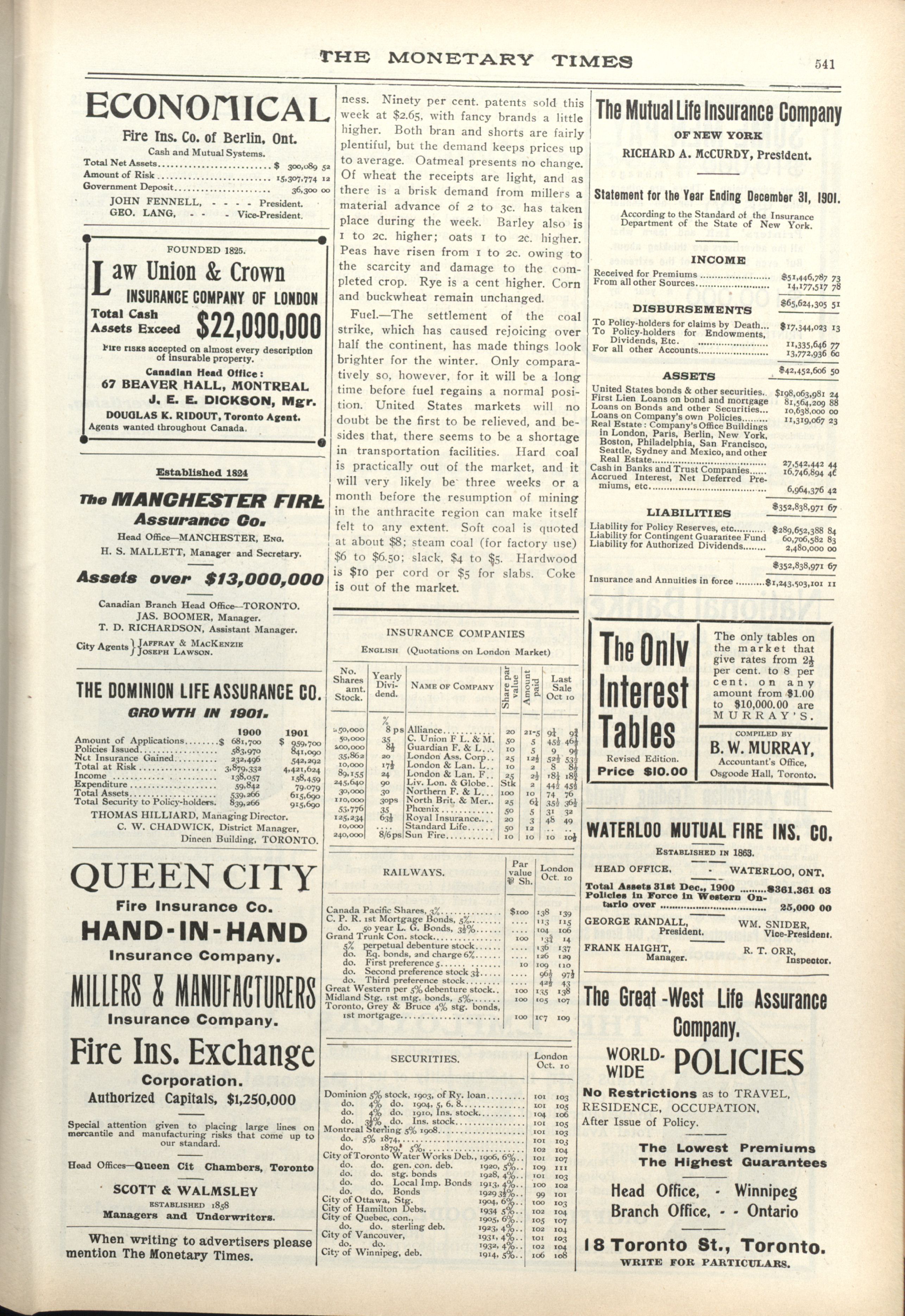 The Monetary Times, trade review and insurance chronicle. : 36th Year. No. 17. (October 24, 1902)