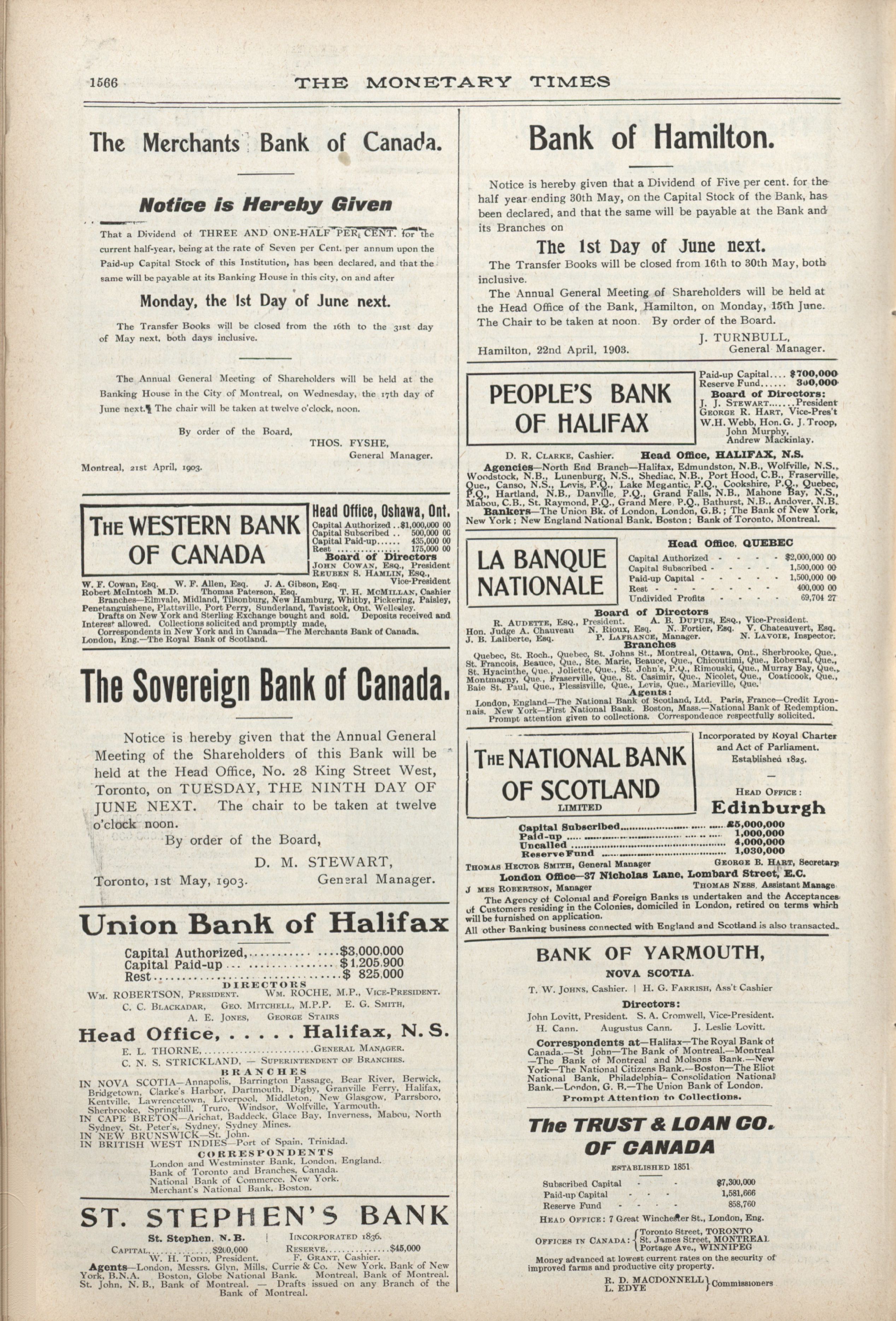 The monetary times, trade review and insurance chronicle : 36th Year. No. 47 (May 22, 1903)