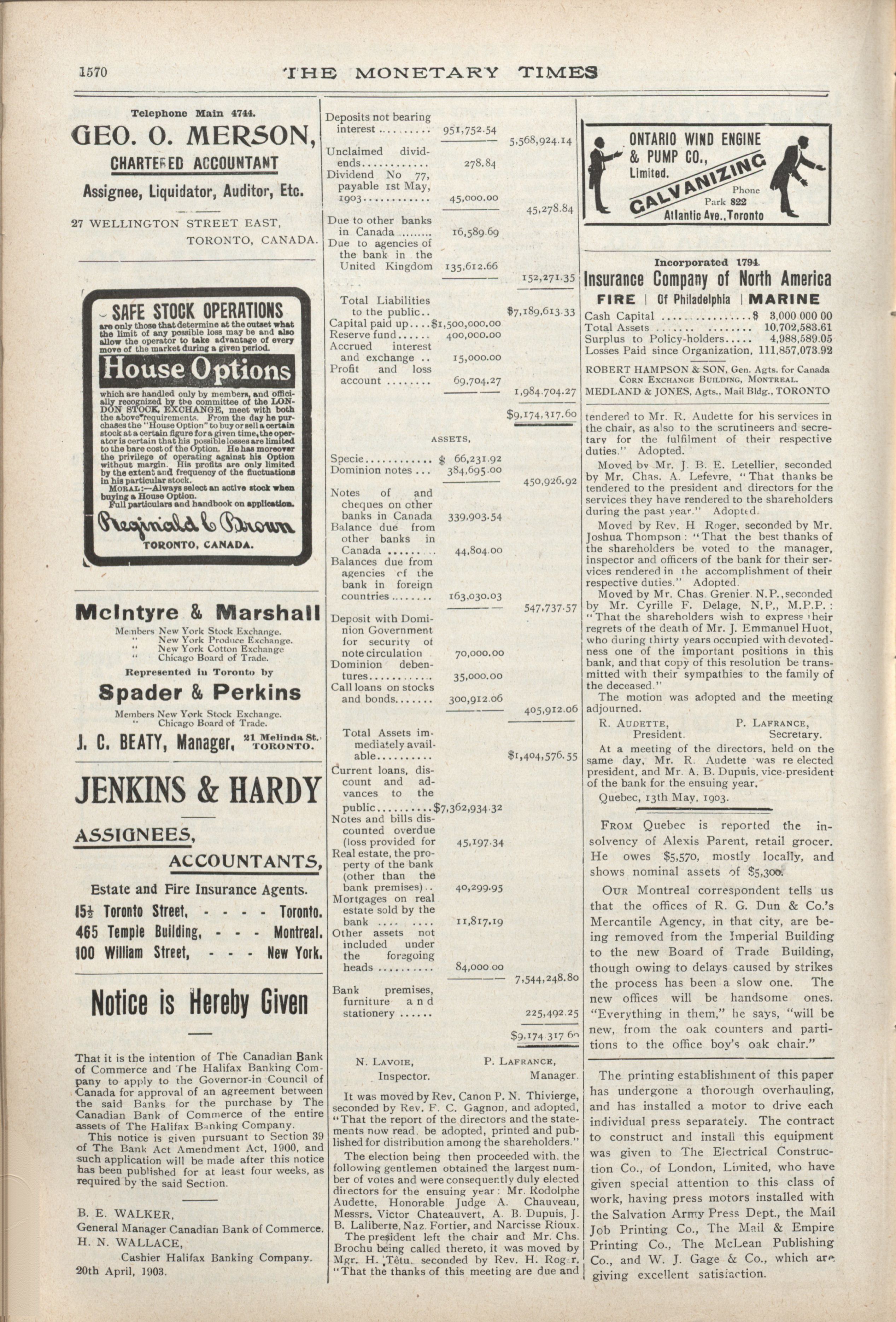 The monetary times, trade review and insurance chronicle : 36th Year. No. 47 (May 22, 1903)