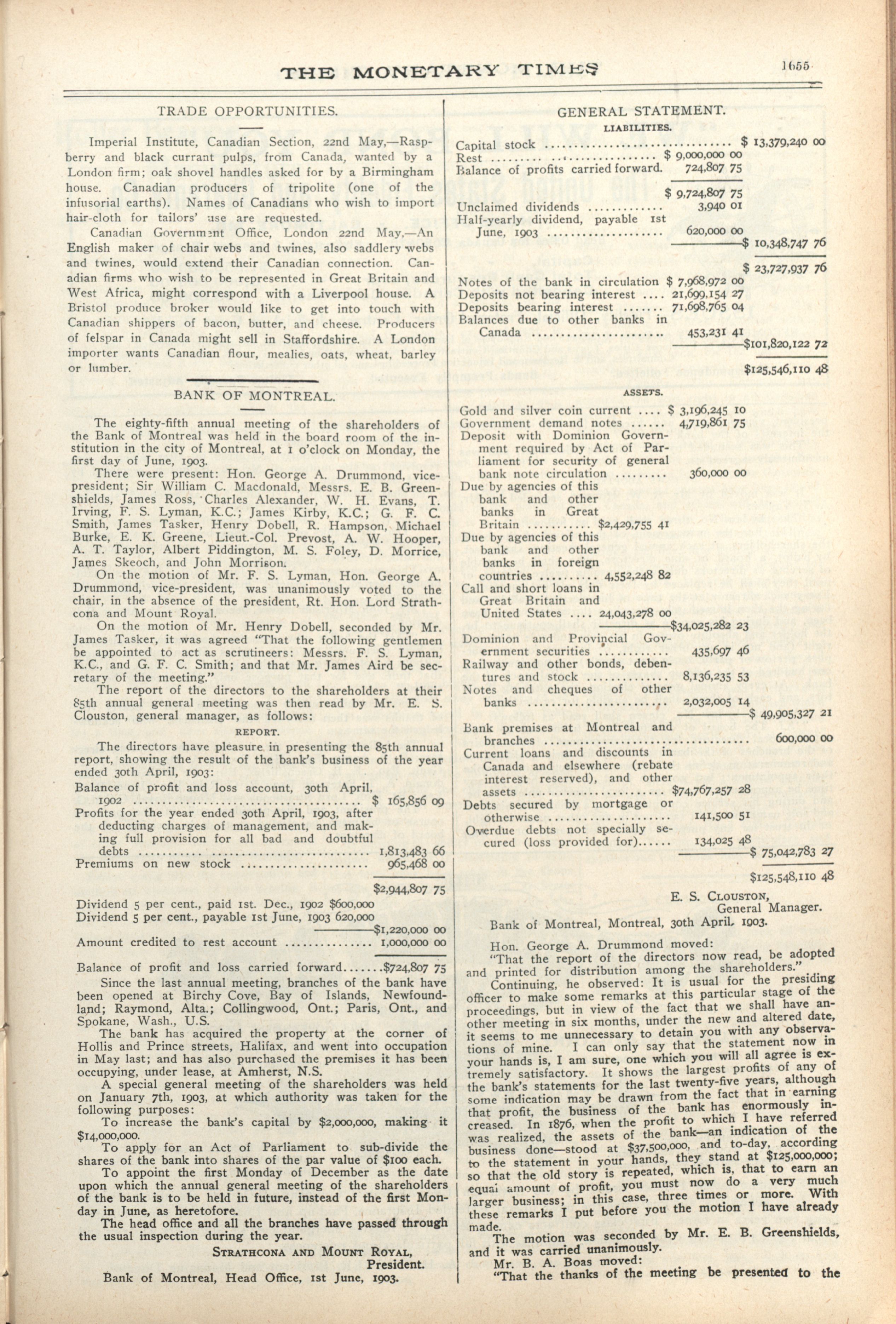 The monetary times, trade review and insurance chronicle : 36th Year. No. 49. (June 5, 1903)