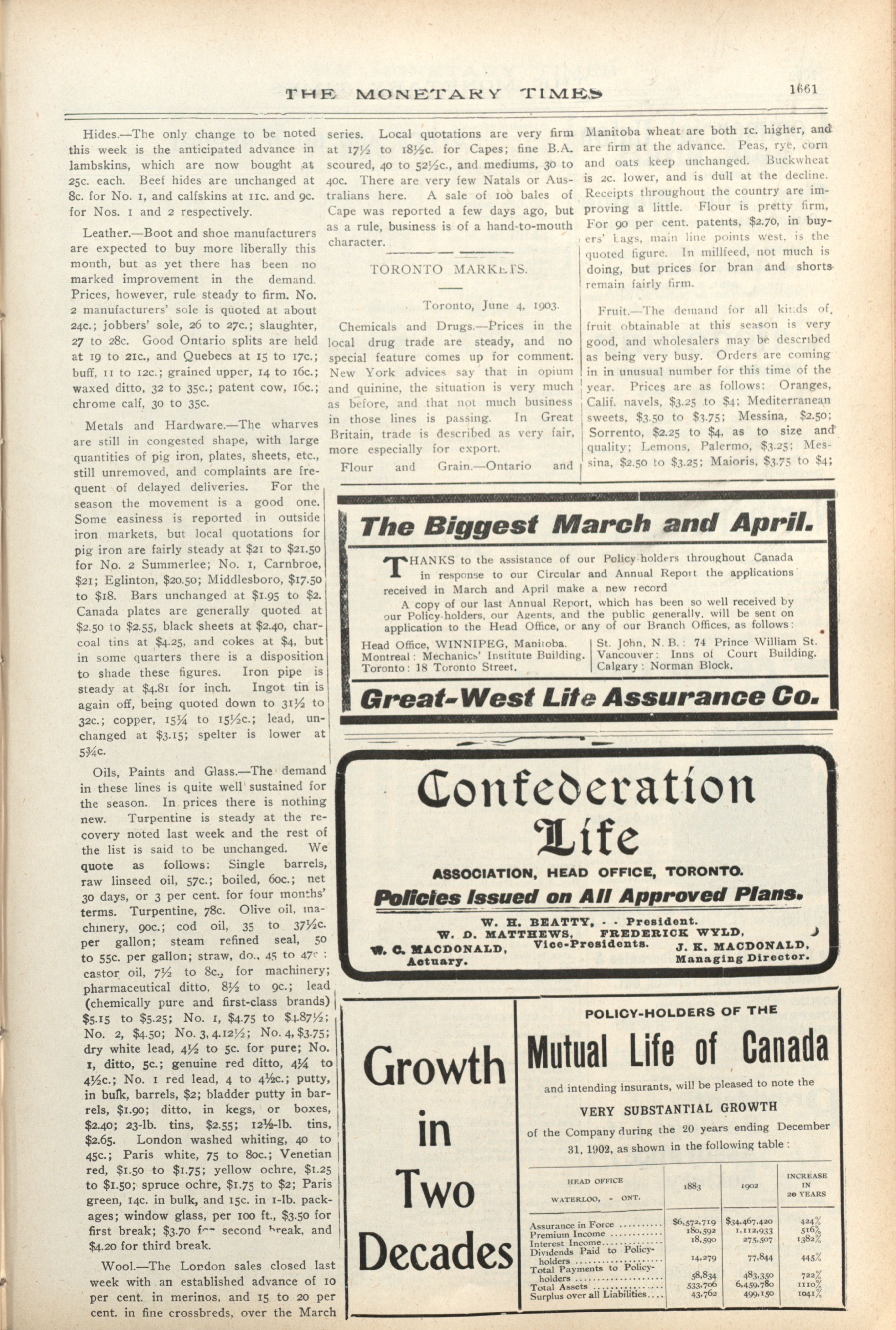 - The Monetary Times, trade review and insurance chronicle. : 36th Year. No. 49. (June 5, 1903)