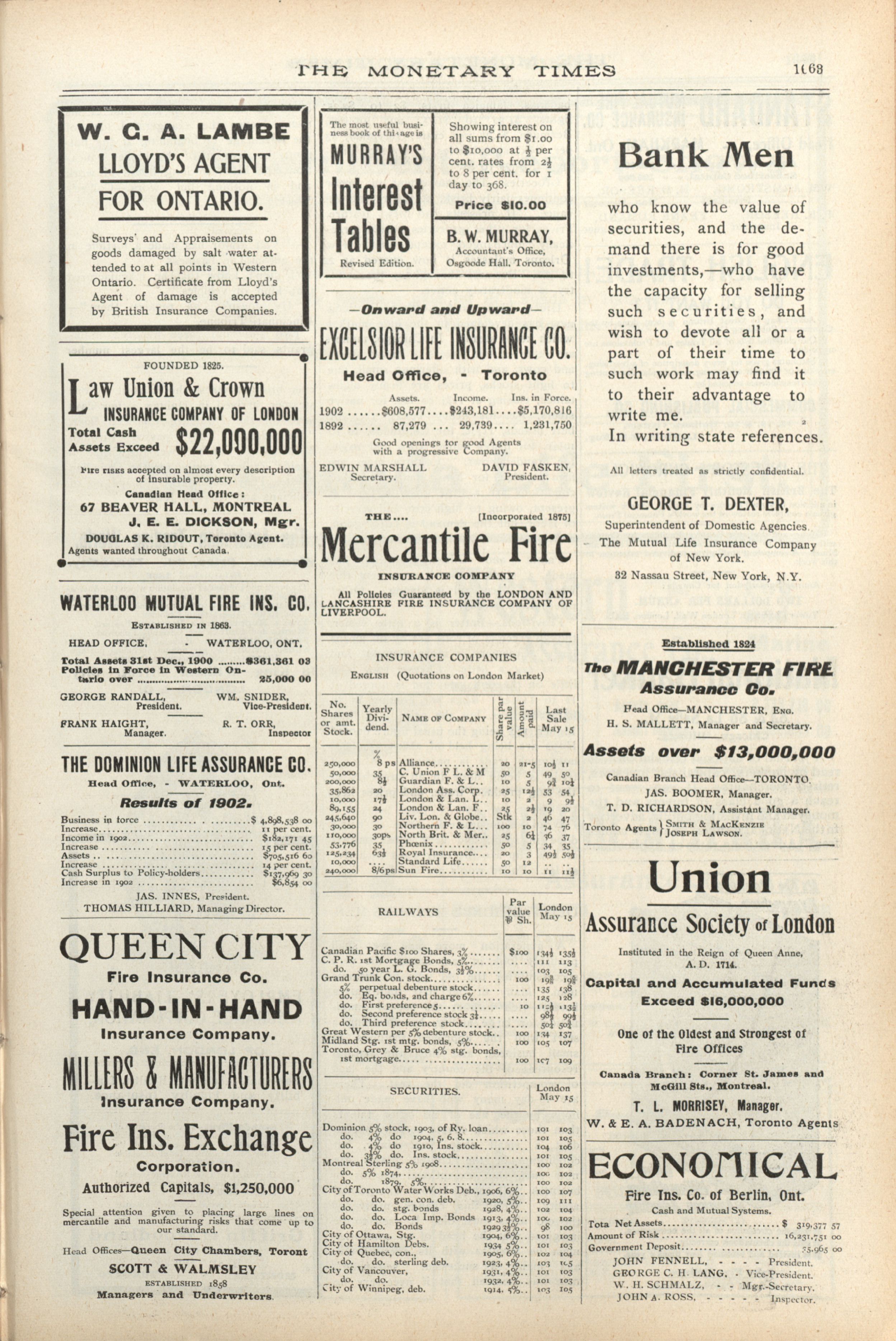 - The Monetary Times, trade review and insurance chronicle. : 36th Year. No. 49. (June 5, 1903)