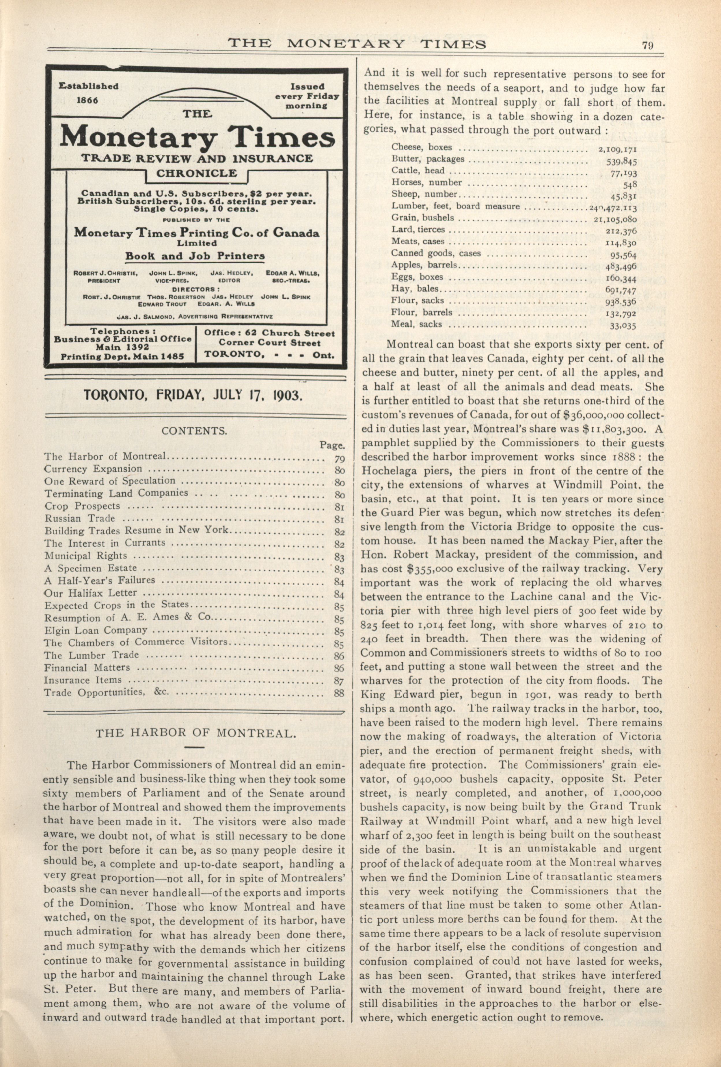 The Monetary Times, trade review and insurance chronicle. : 37th Year. No. 3 (July 17, 1903)