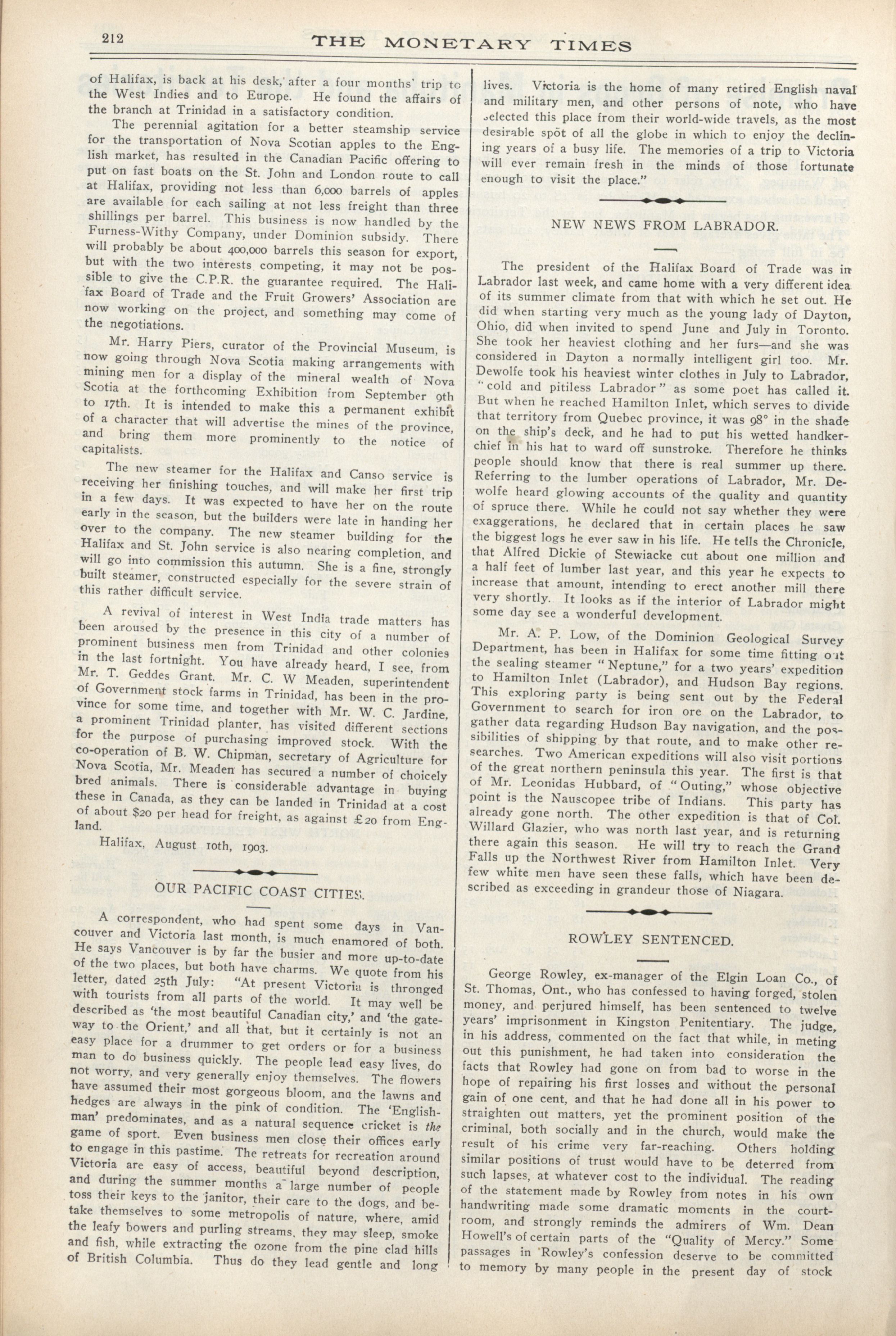 The monetary times, trade review and insurance chronicle : 37th Year. No. 7 (August 14, 1903)