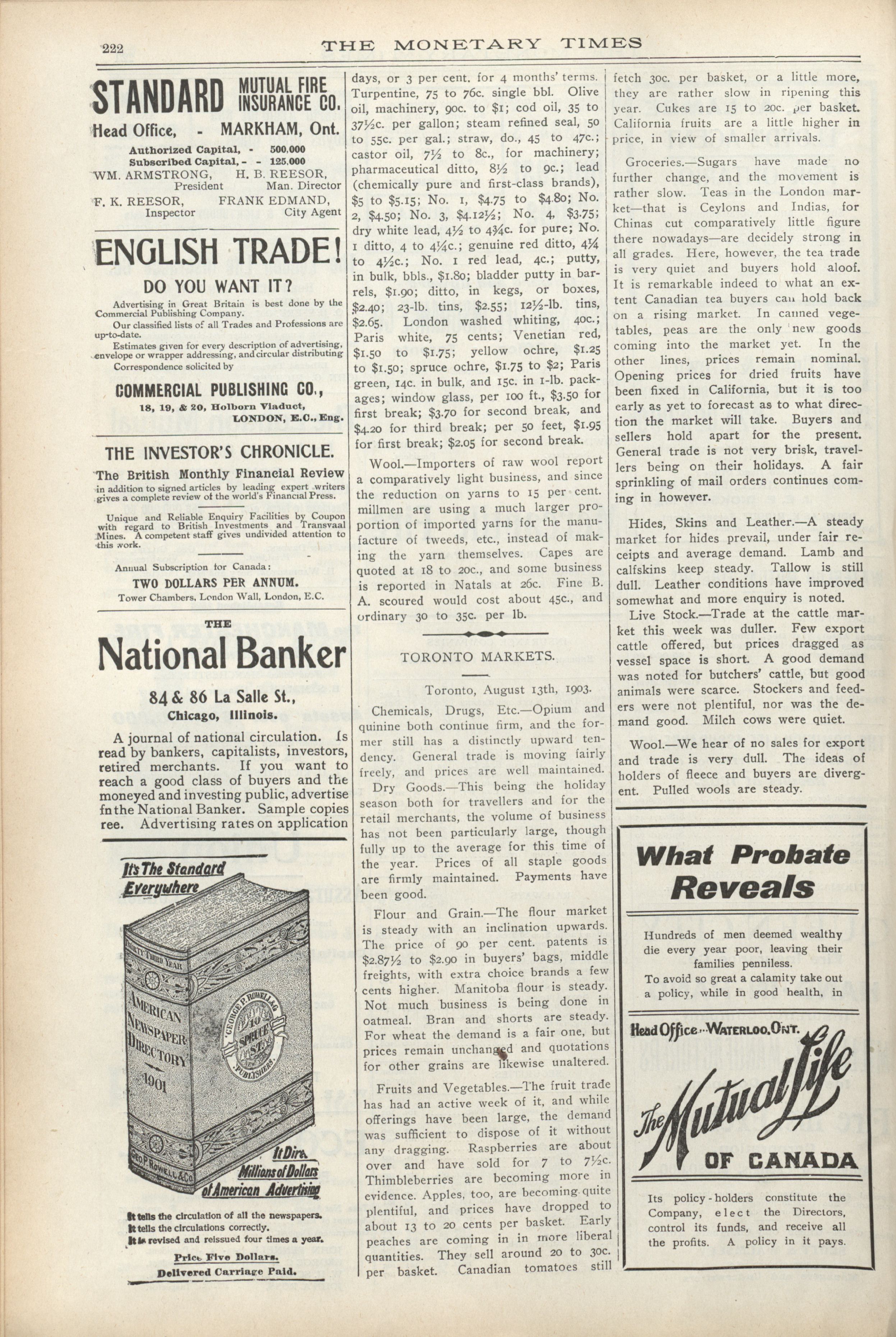 The monetary times, trade review and insurance chronicle : 37th Year. No. 7 (August 14, 1903)