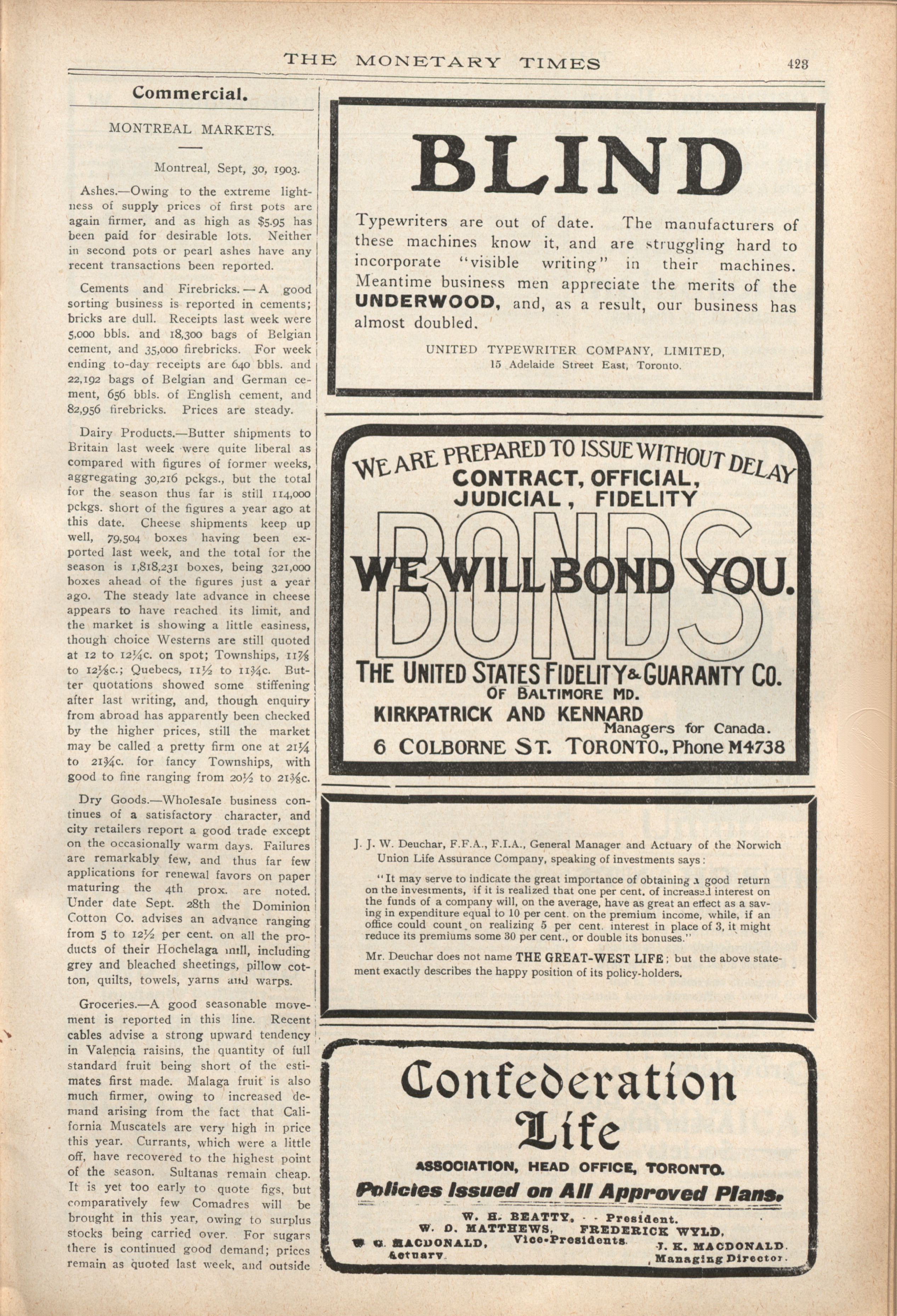 - The Monetary Times, trade review and insurance chronicle. : 37th Year. No. 14 (October 2, 1903)