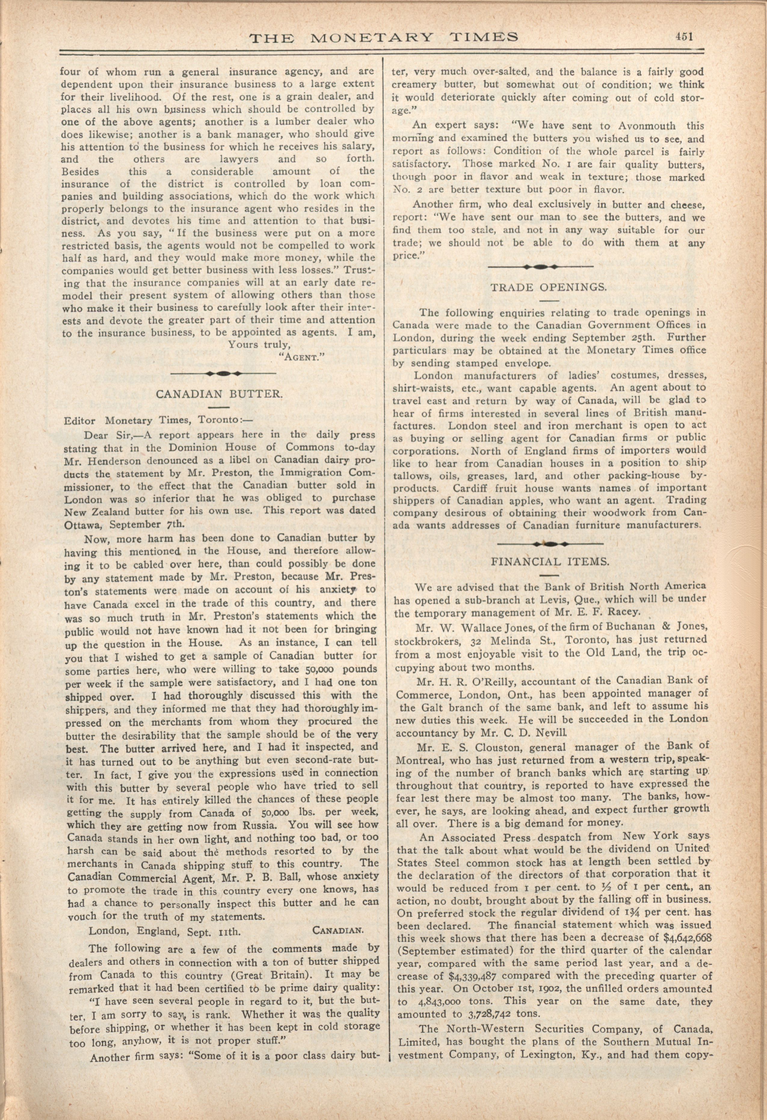 - The Monetary Times, trade review and insurance chronicle. : 37th Year. No. 15 (October 9, 1903)