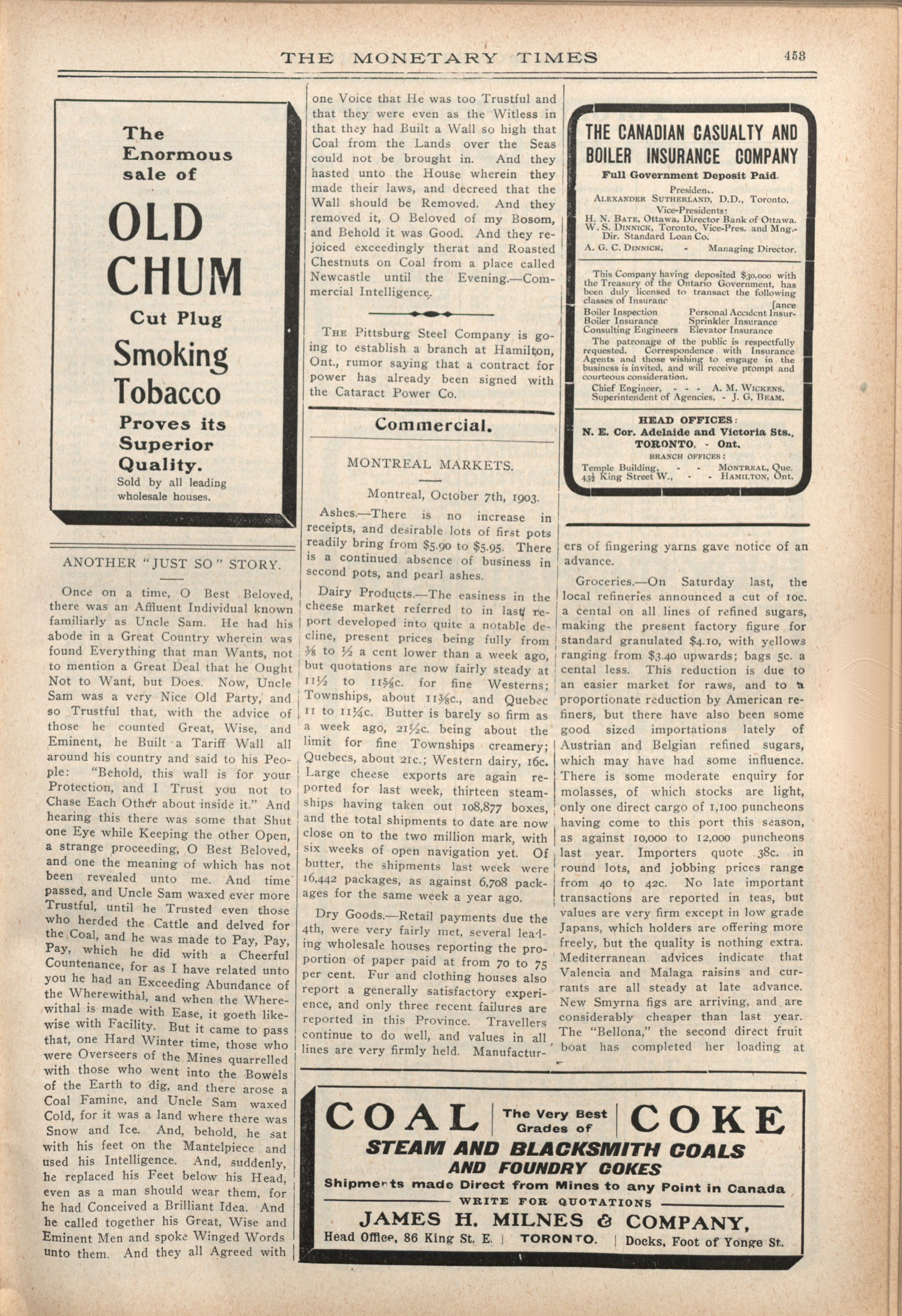 - The Monetary Times, trade review and insurance chronicle. : 37th Year. No. 15 (October 9, 1903)