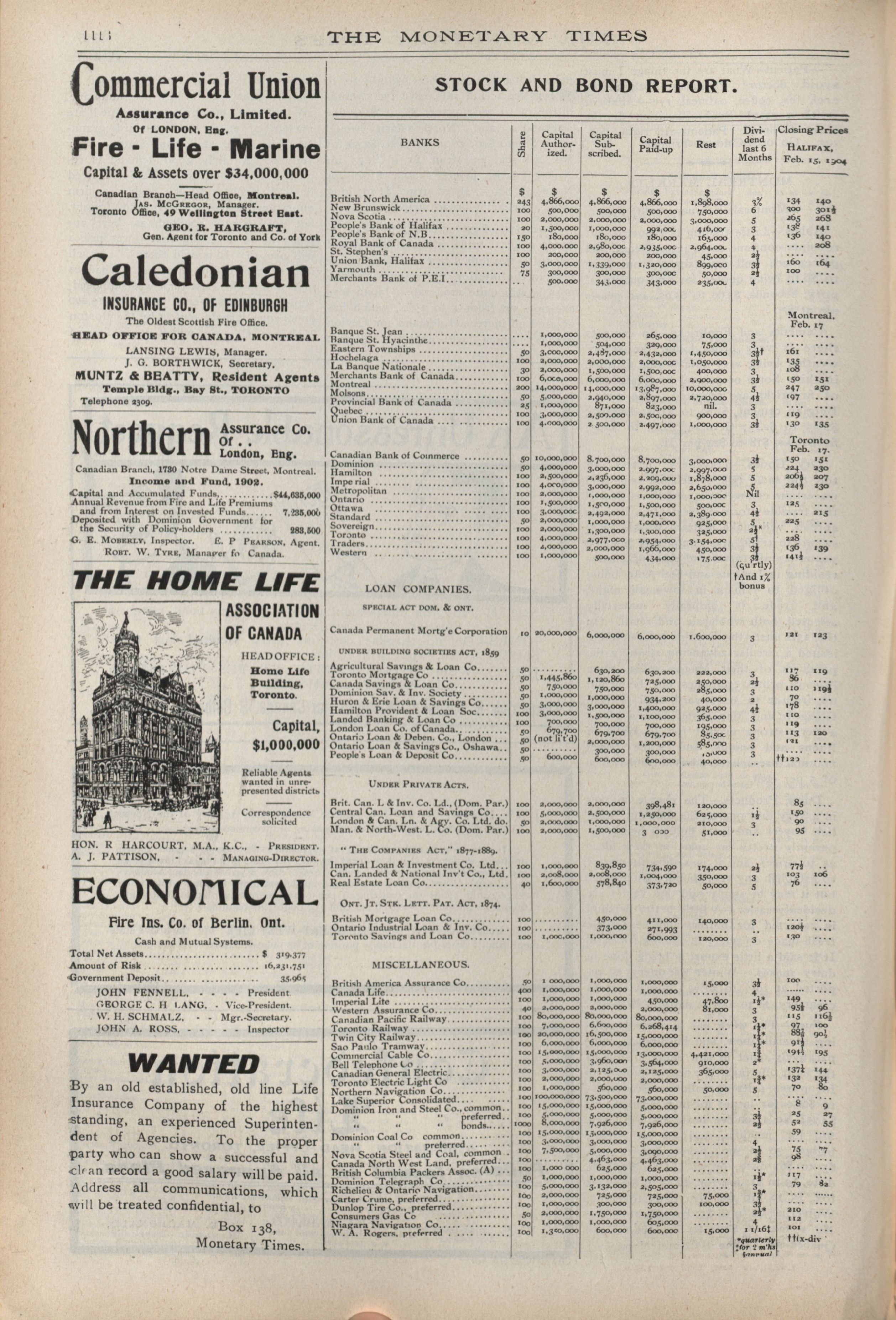 - The Monetary Times, trade review and insurance chronicle. : 37th Year. No. 34. (February 19, 1904)