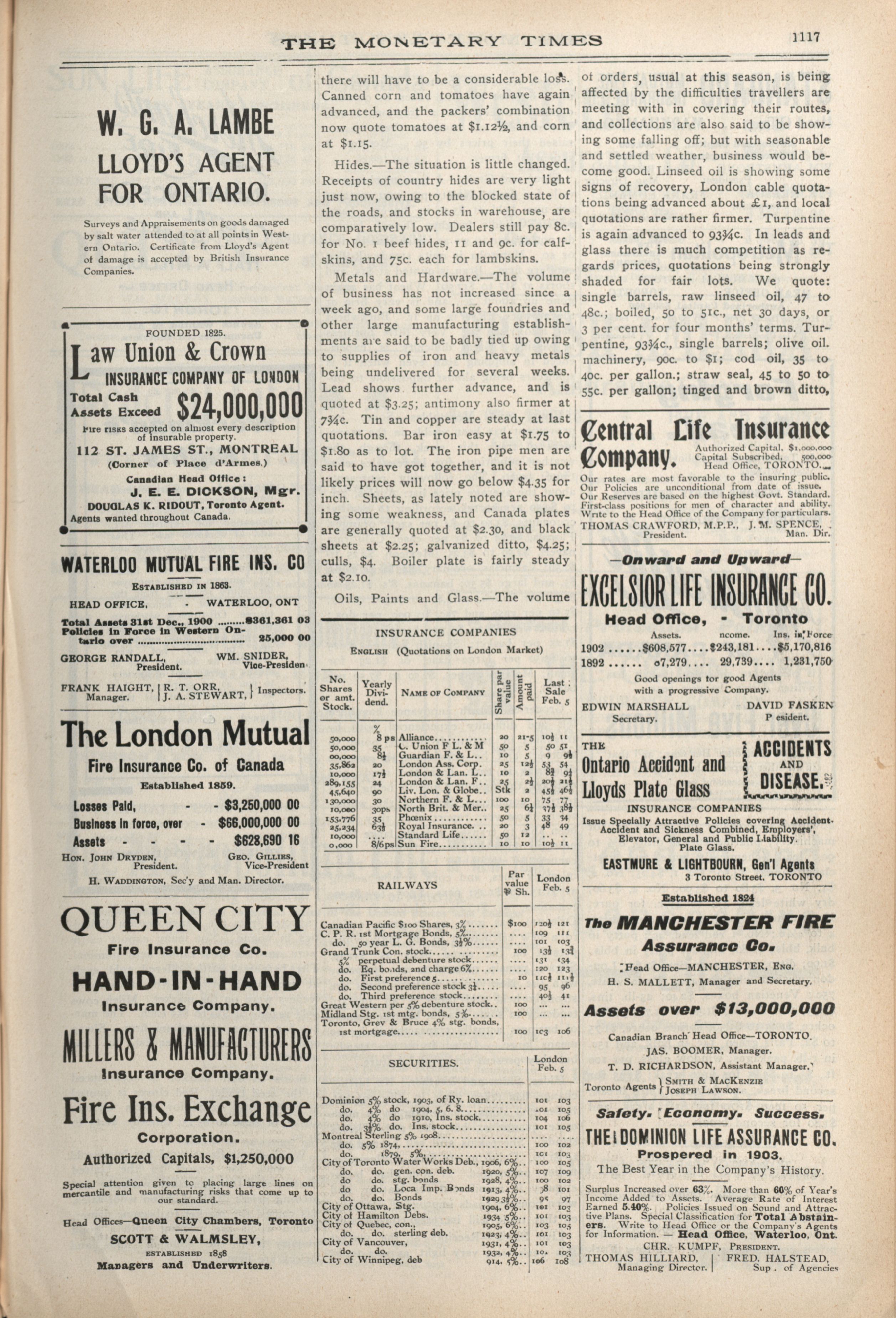 - The Monetary Times, trade review and insurance chronicle. : 37th Year. No. 34. (February 19, 1904)