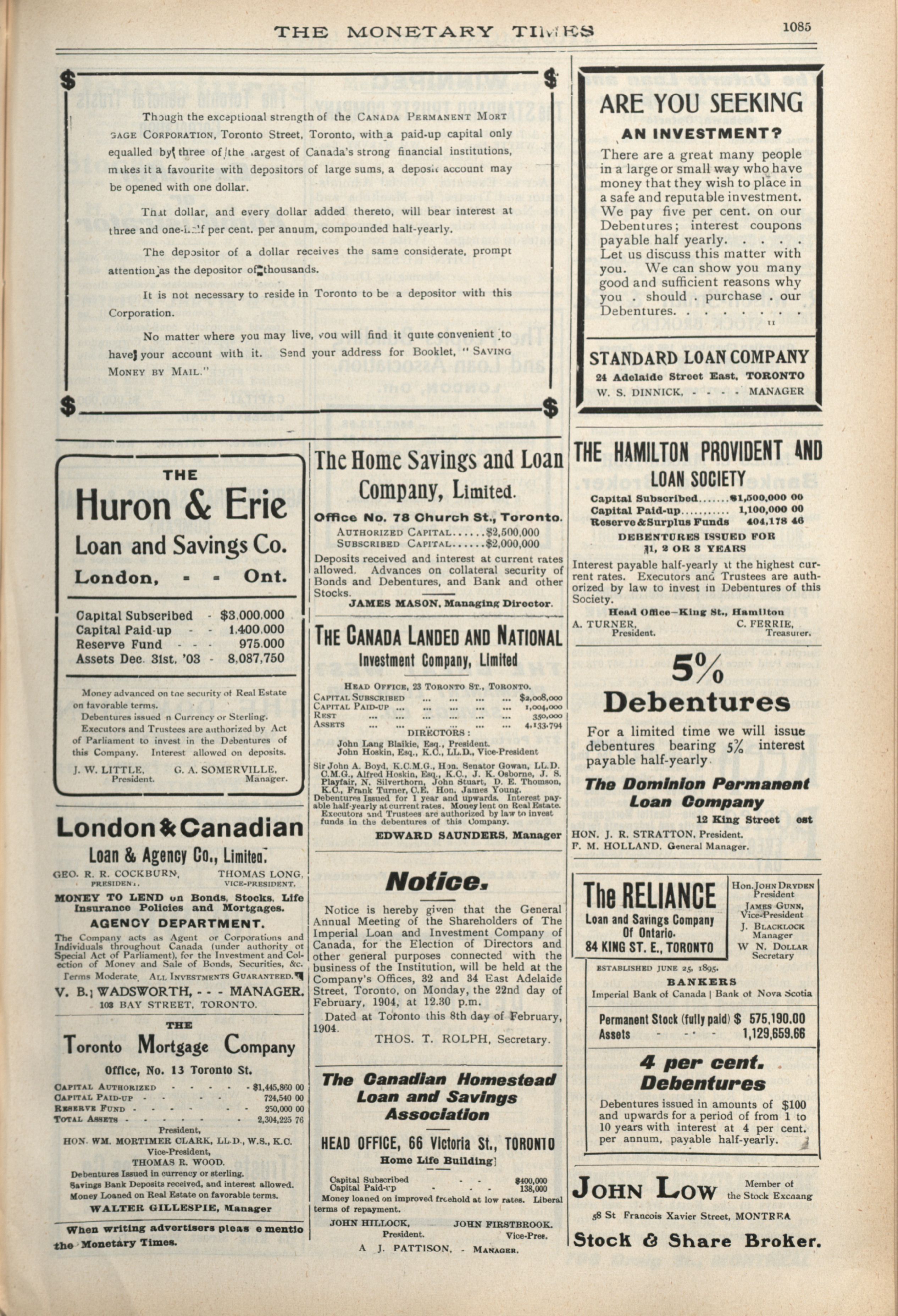 - The Monetary Times, trade review and insurance chronicle. : 37th Year. No. 34. (February 19, 1904)