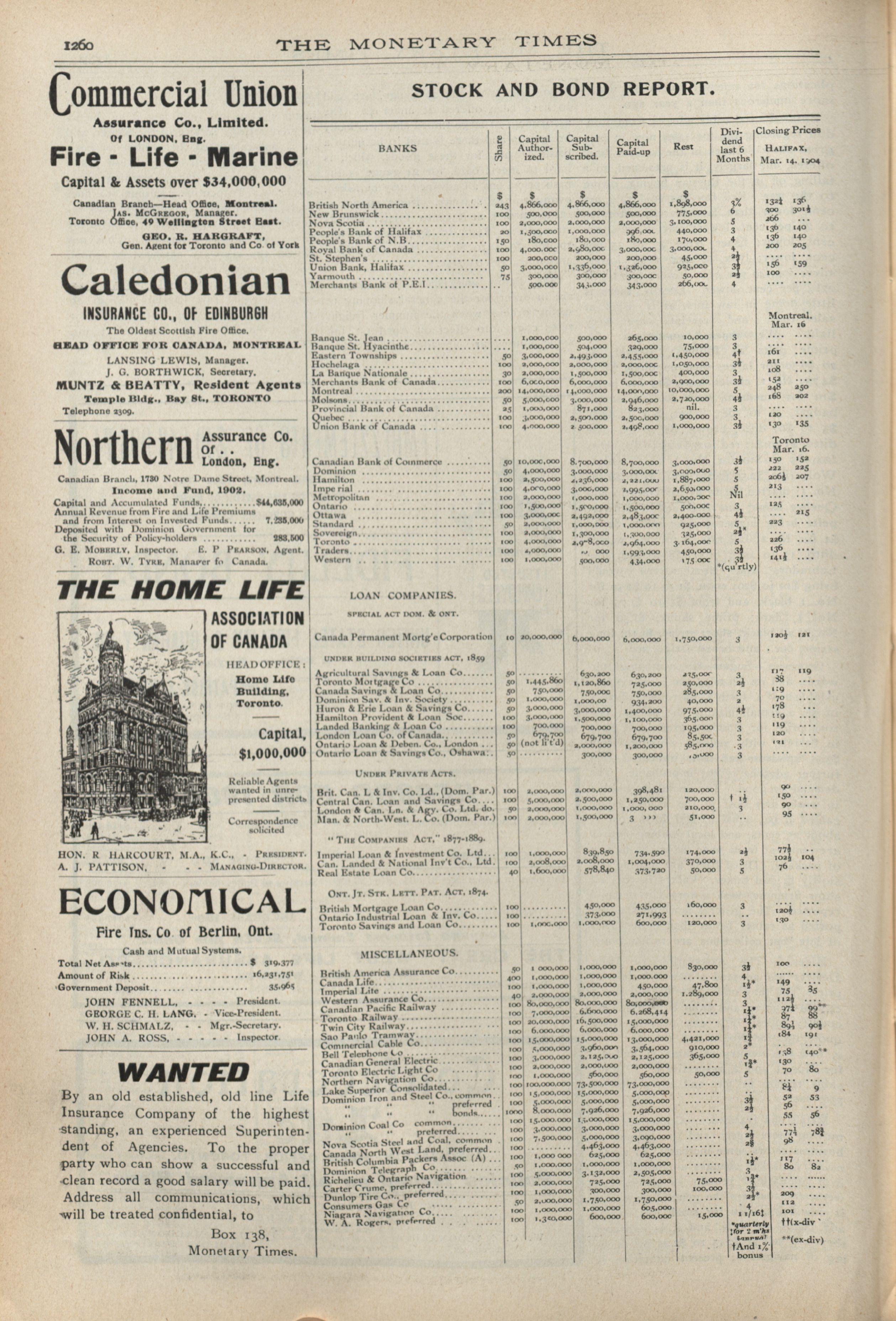 The monetary times, trade review and insurance chronicle : 37th Year. No. 38. (March 18, 1904)