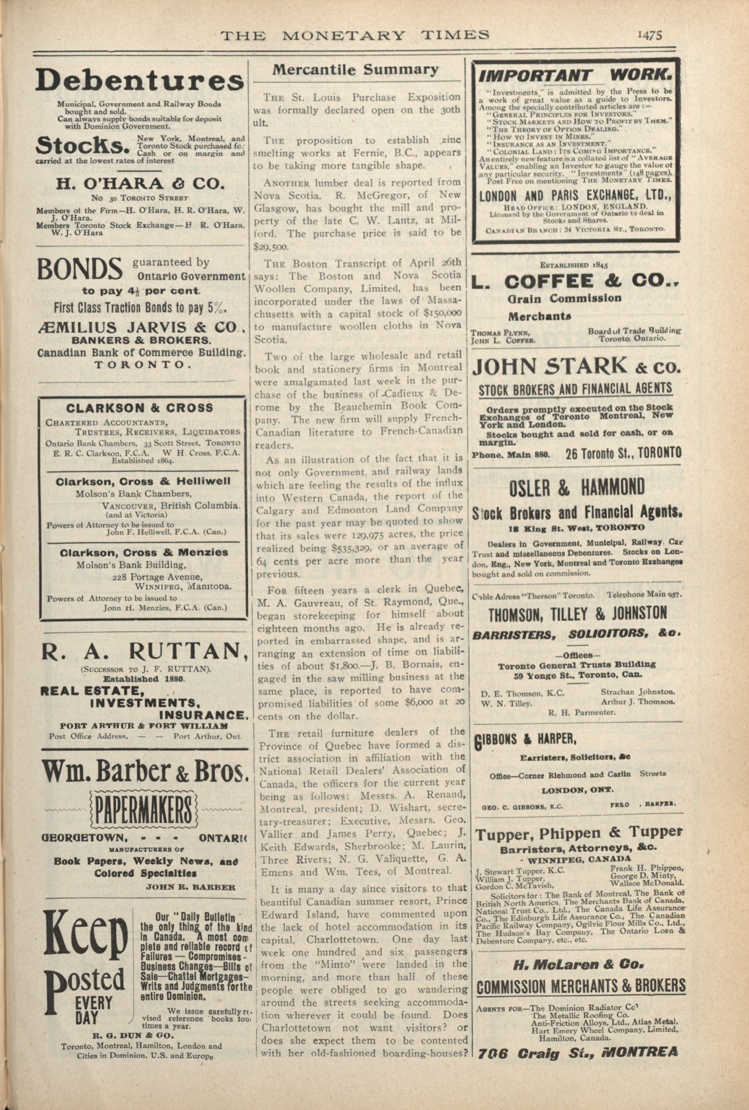 - The Monetary Times, trade review and insurance chronicle. : 37th Year. No. 45. (May 6, 1904)