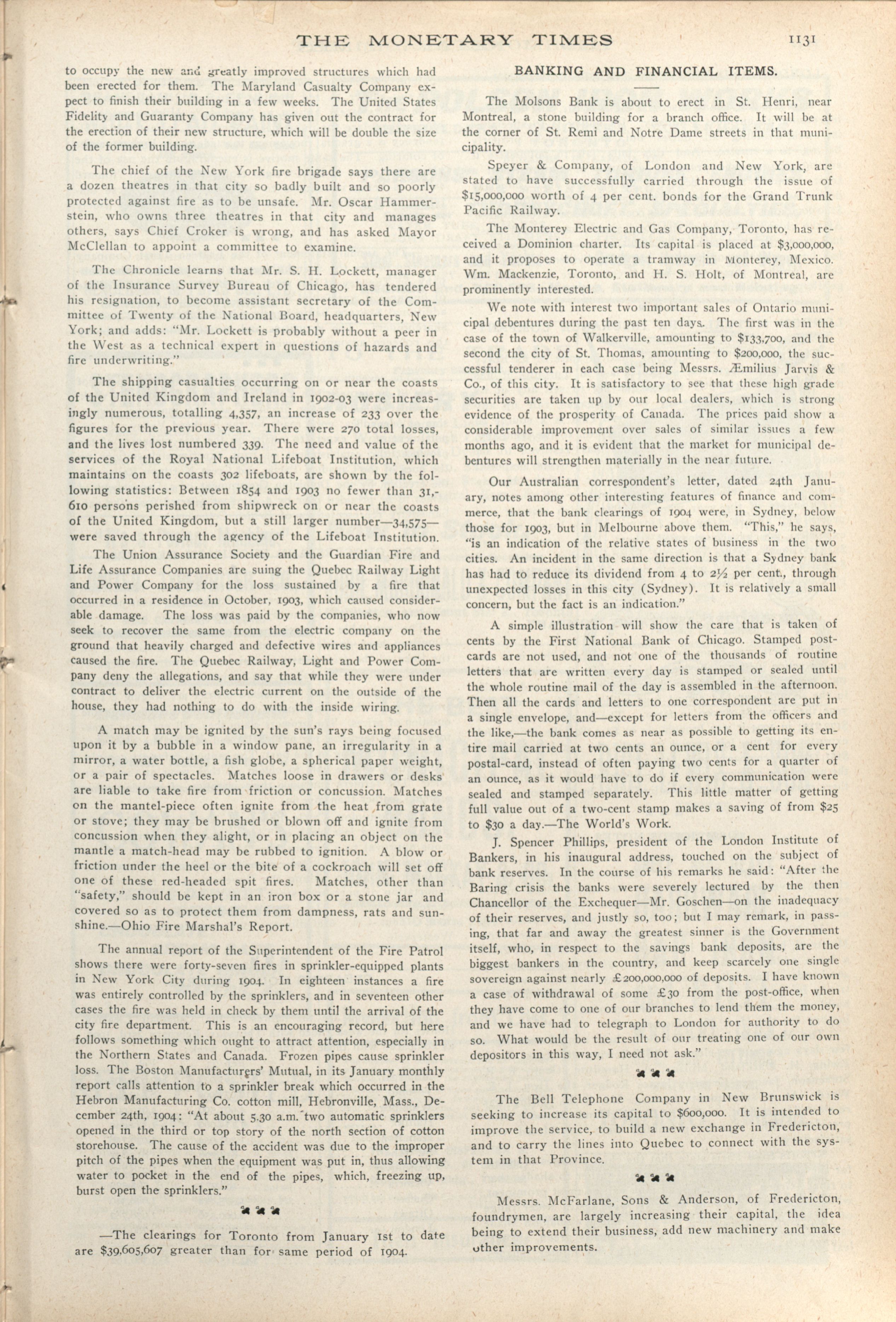 The monetary times, trade review and insurance chronicle : 38th Year No. 35. (February 24, 1905)