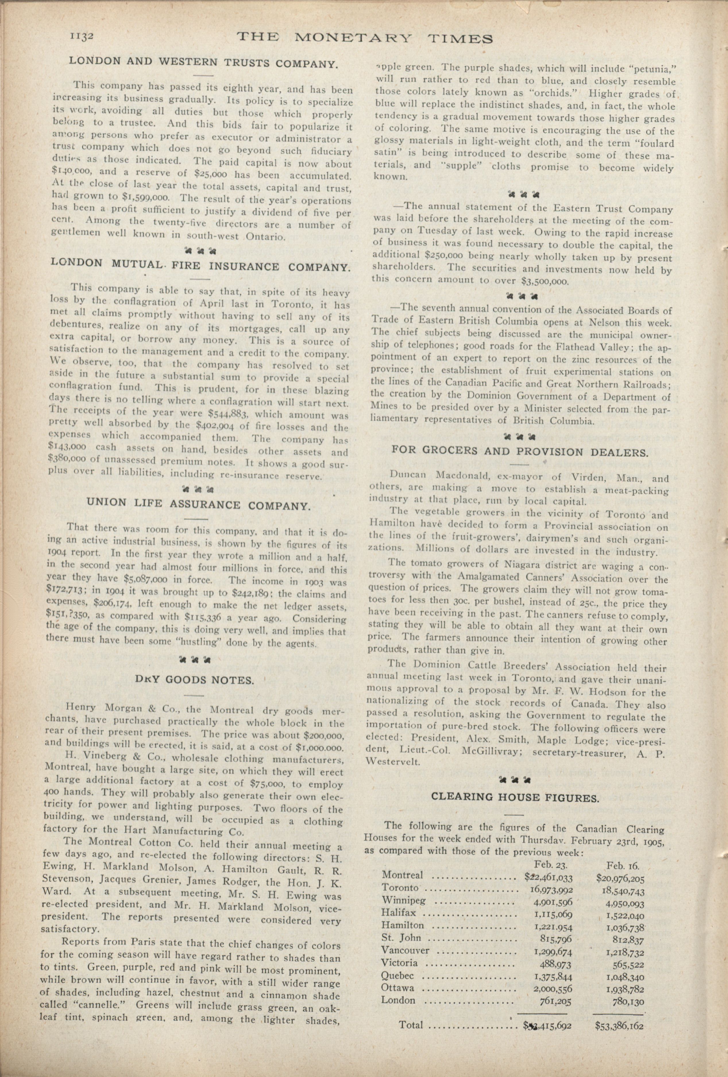 The Monetary Times, trade review and insurance chronicle. : 38th Year No. 35. (February 24, 1905)