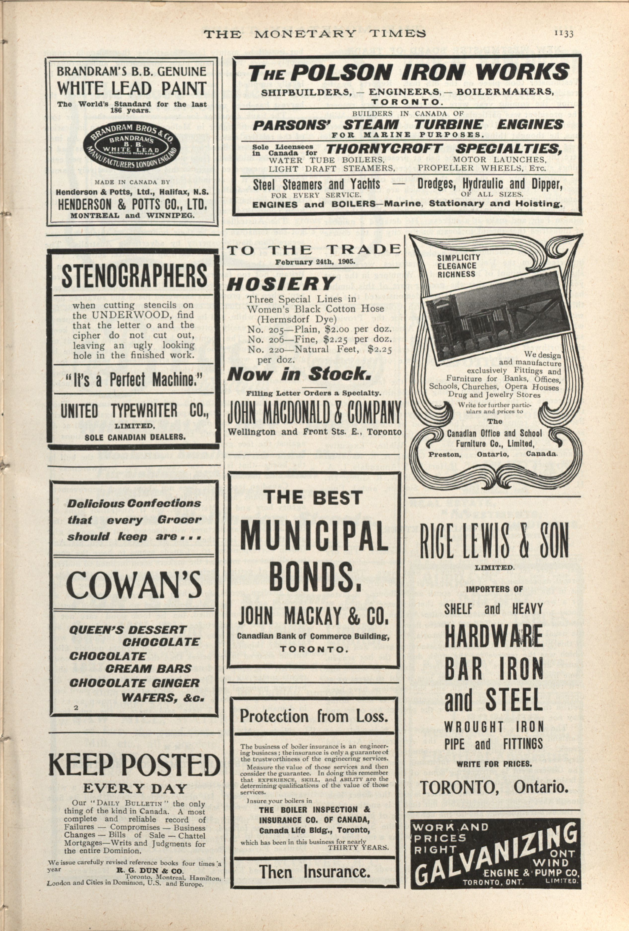 - The Monetary Times, trade review and insurance chronicle. : 38th Year No. 35. (February 24, 1905)