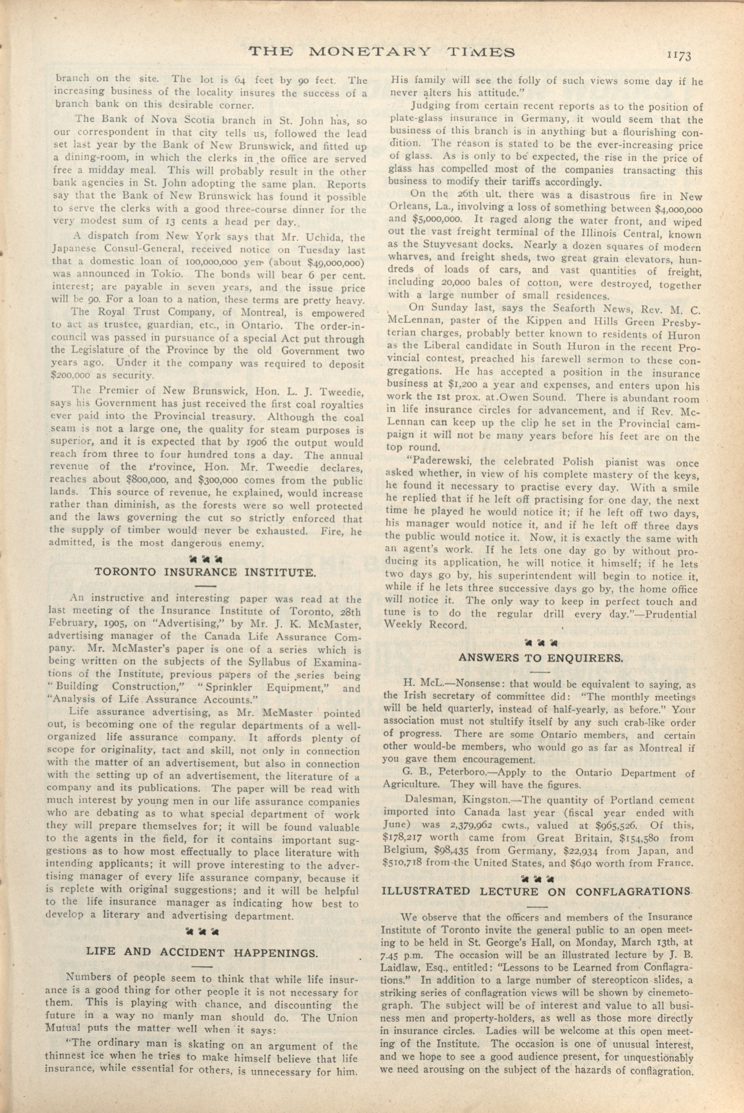- The Monetary Times, trade review and insurance chronicle. : 38th Year No. 36. (March 3, 1905)