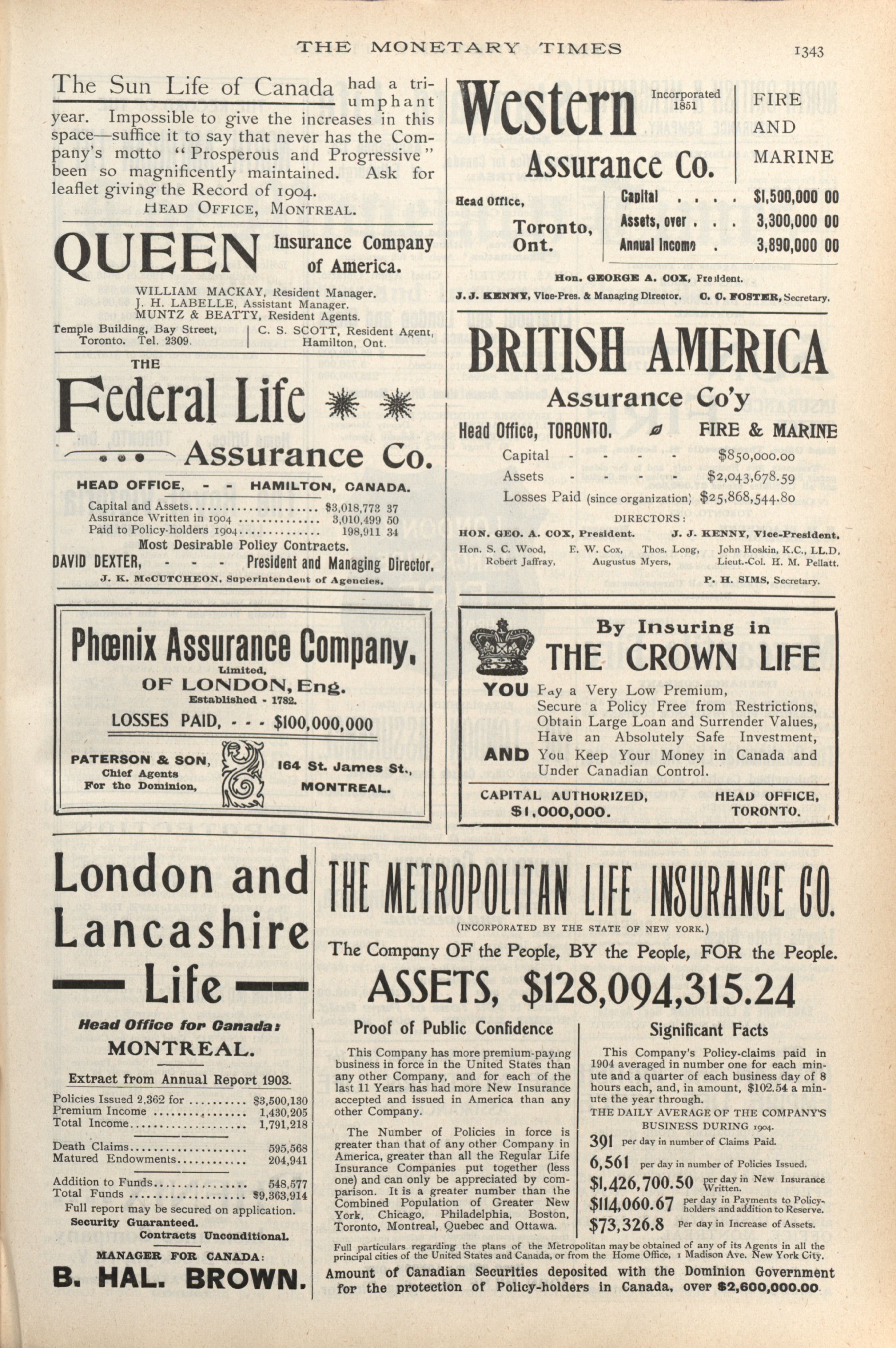 - The Monetary Times, trade review and insurance chronicle. : 38th Year No. 40. (March 31, 1905)