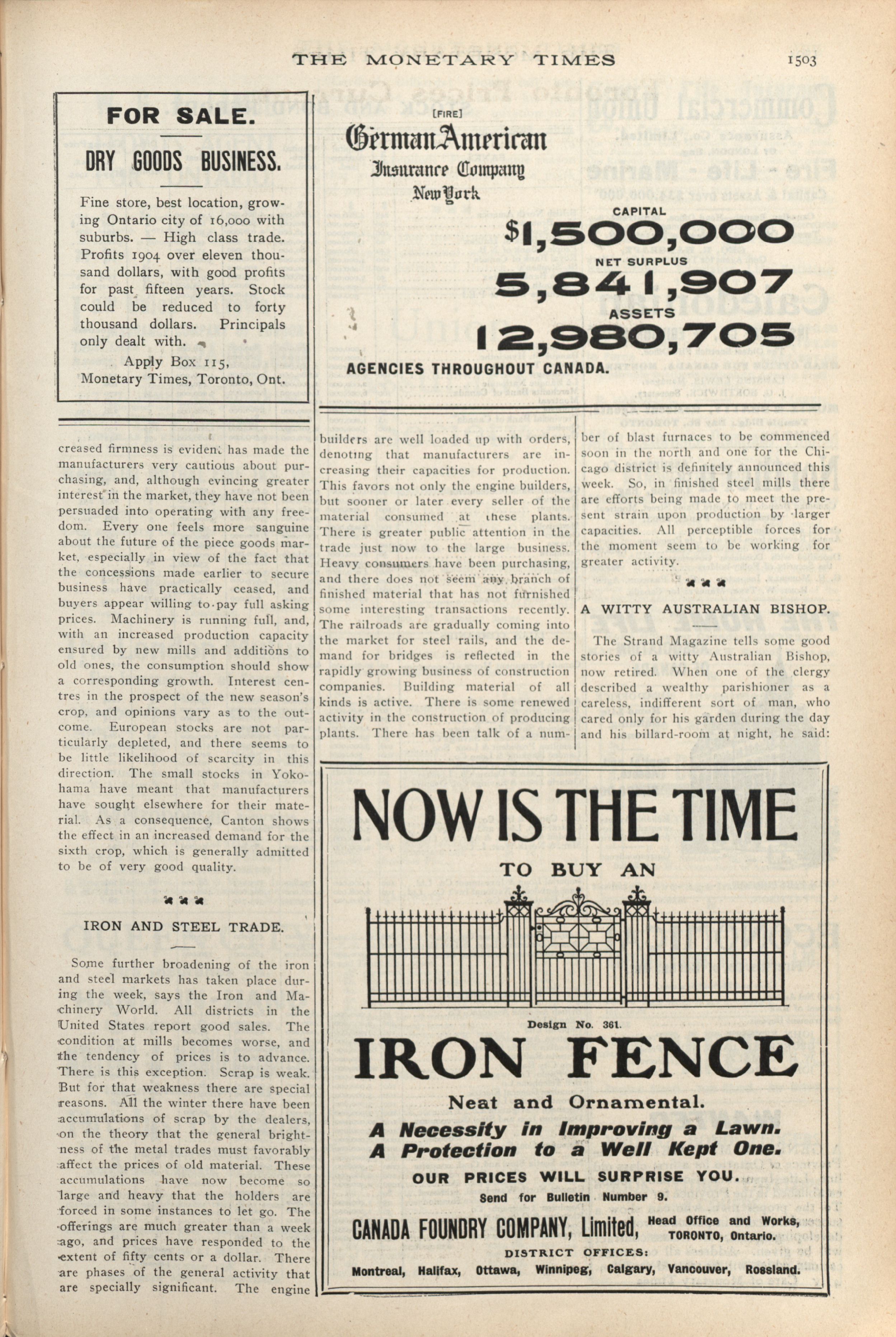 The Monetary Times, trade review and insurance chronicle. : 38th Year No. 45. (May 5, 1905)