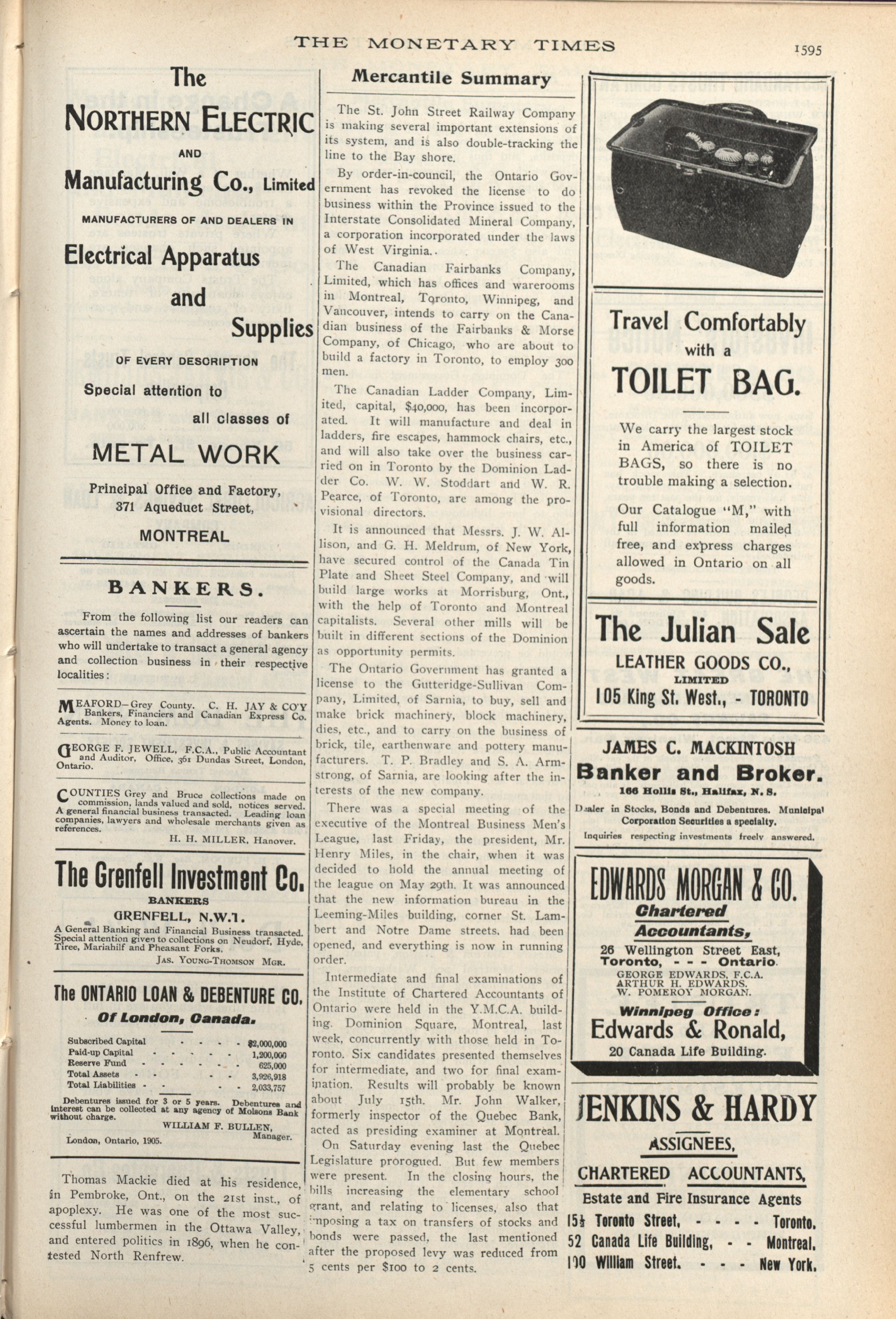 - The Monetary Times, trade review and insurance chronicle. : 38th Year No. 48. (May 26, 1905)