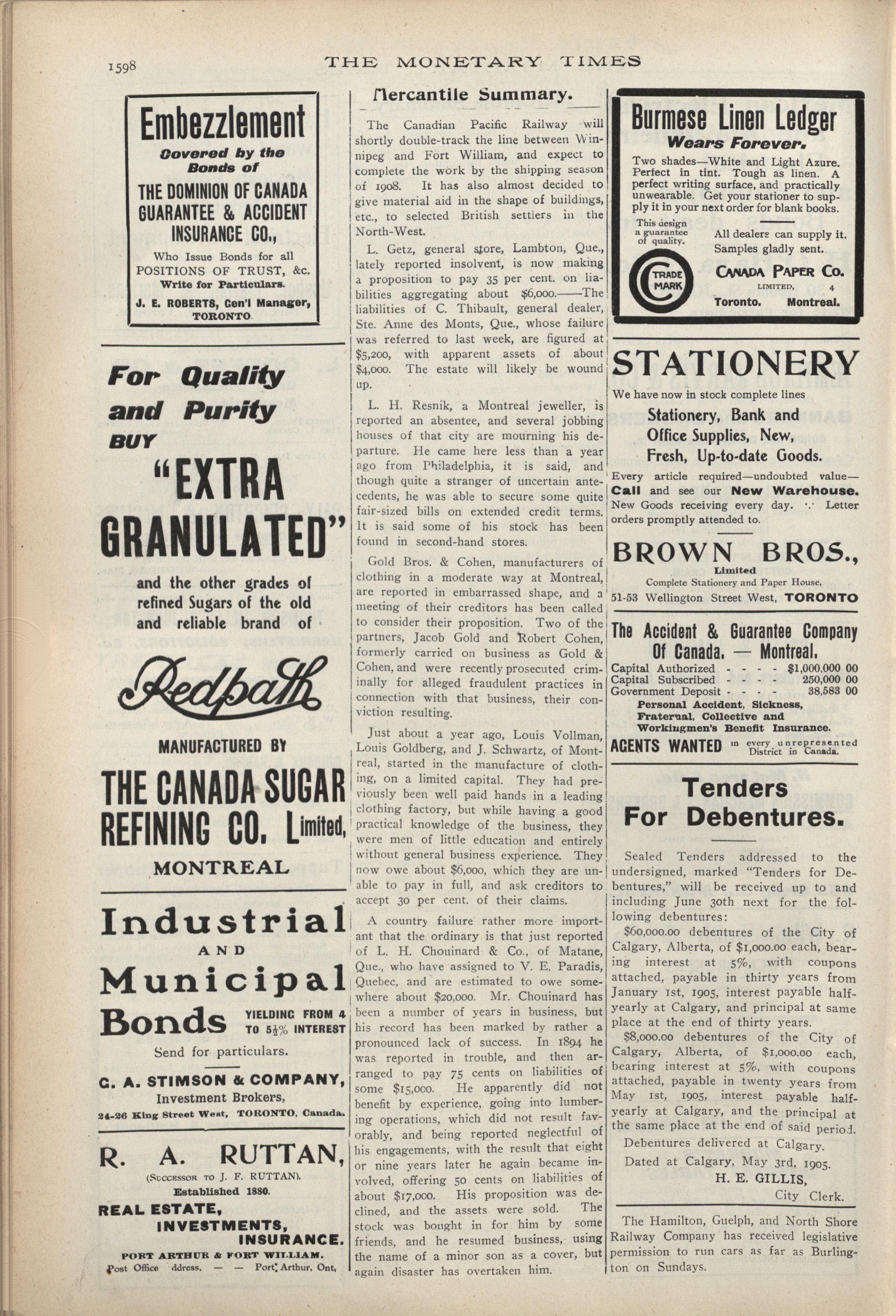 - The Monetary Times, trade review and insurance chronicle. : 38th Year No. 48. (May 26, 1905)