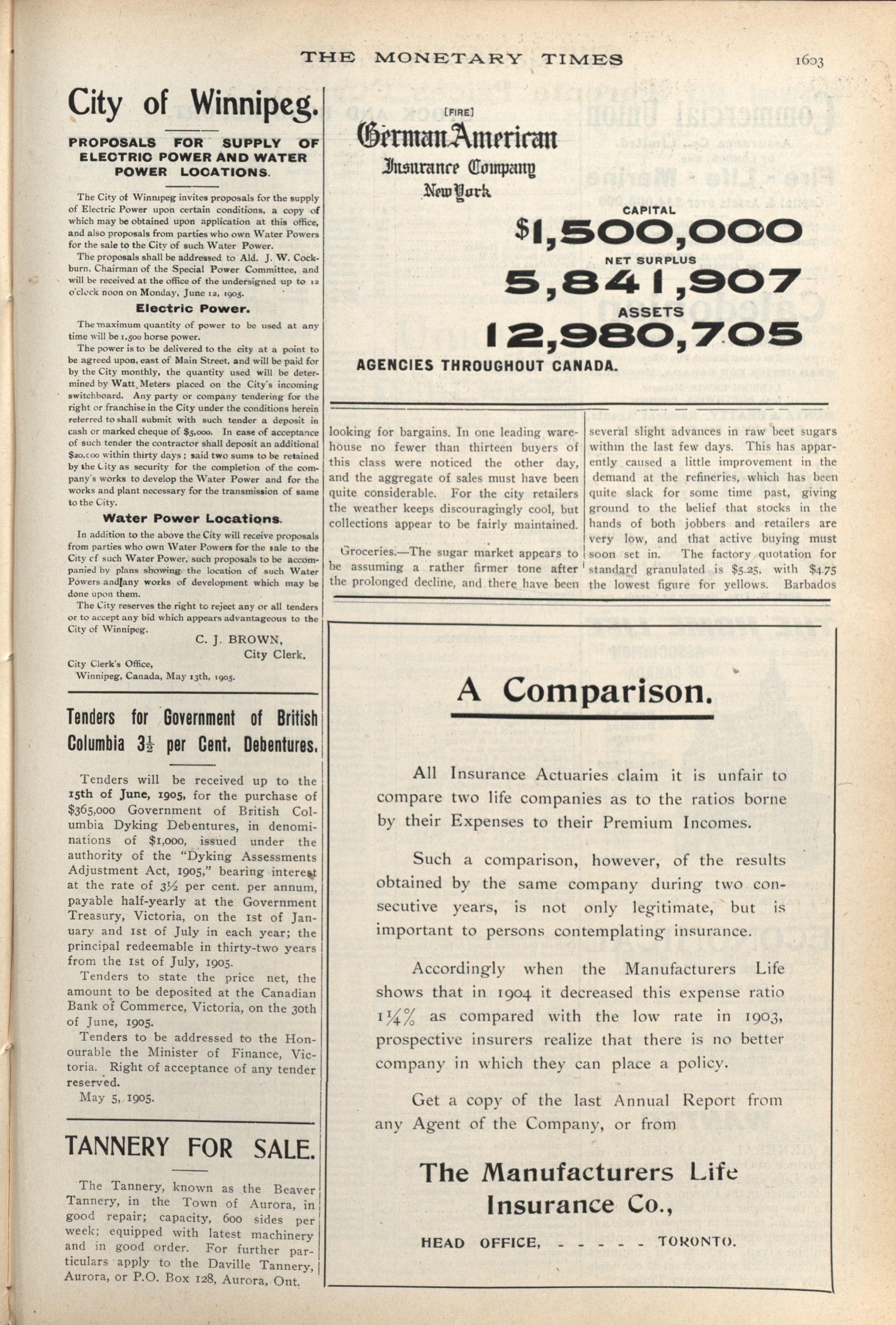 - The Monetary Times, trade review and insurance chronicle. : 38th Year No. 48. (May 26, 1905)