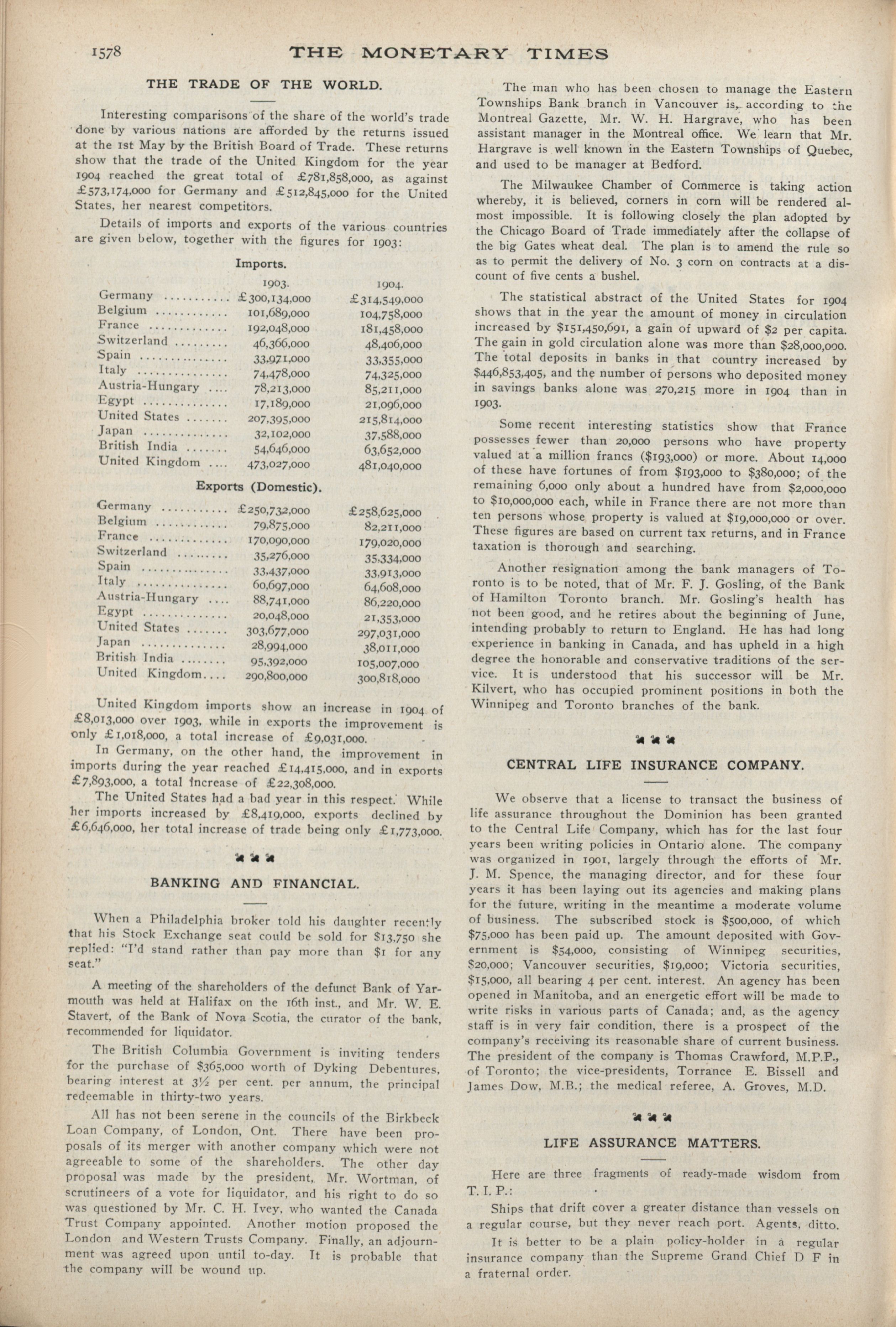 - The Monetary Times, trade review and insurance chronicle. : 38th Year No. 48. (May 26, 1905)