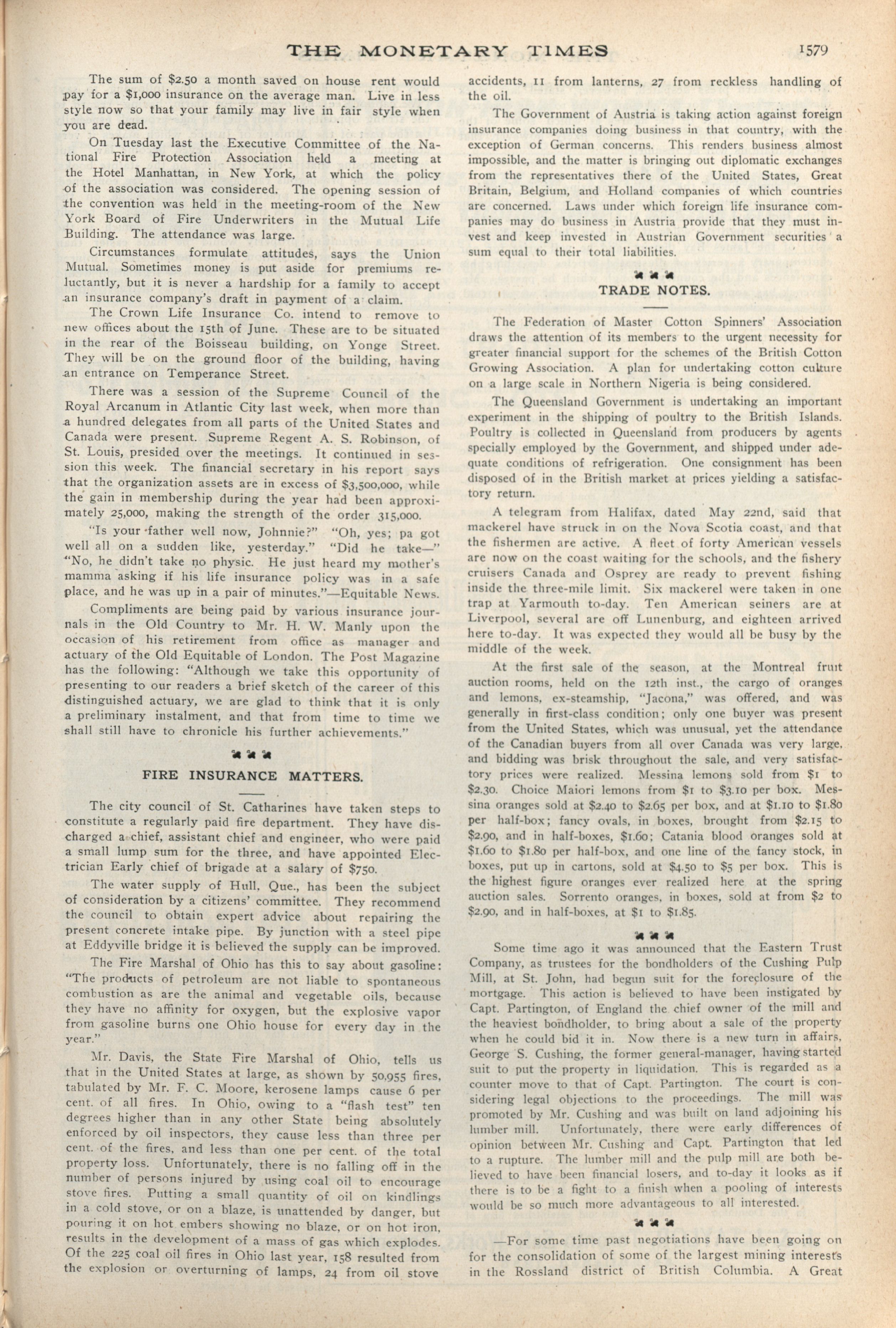 The monetary times, trade review and insurance chronicle : 38th Year No. 48. (May 26, 1905)