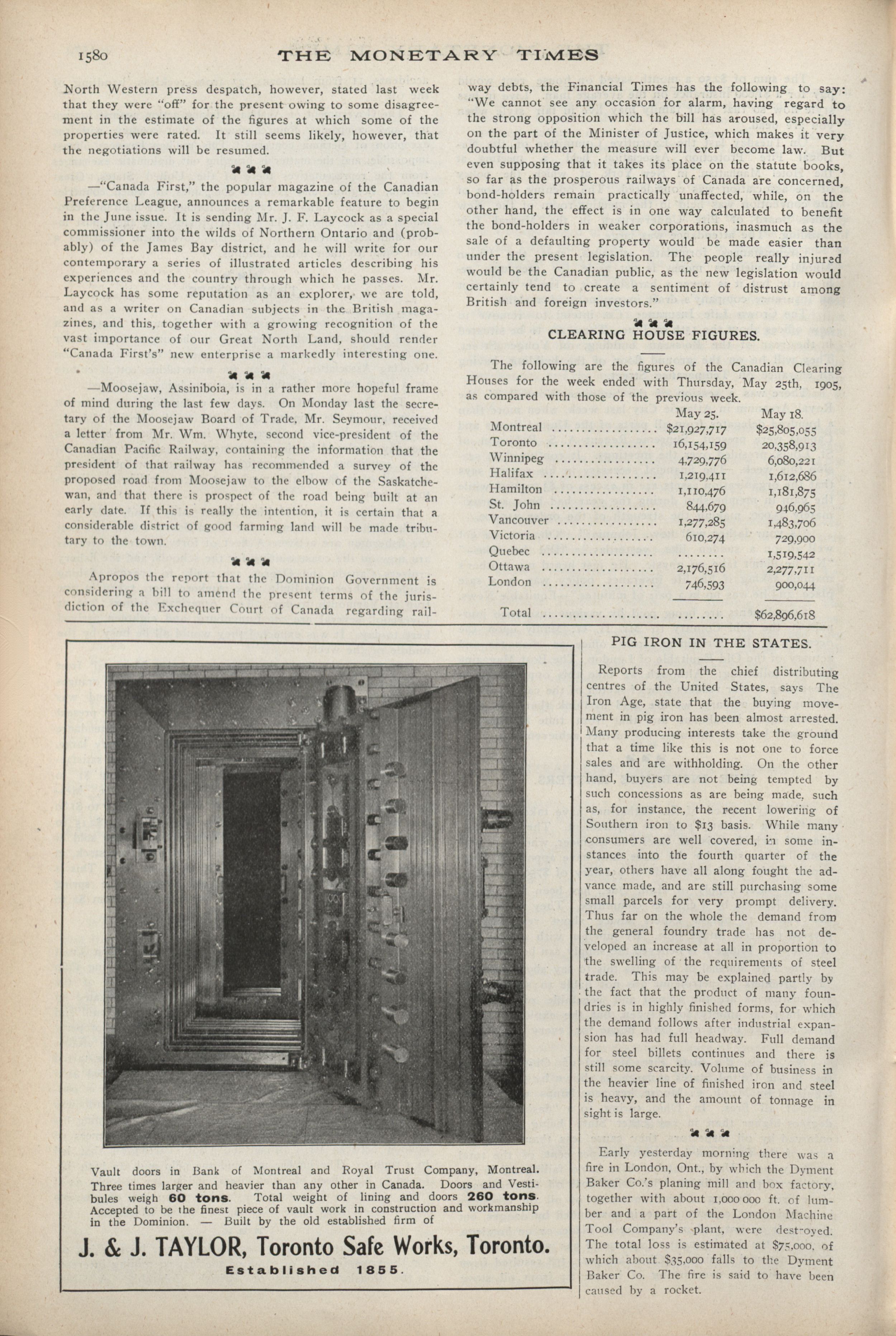 The monetary times, trade review and insurance chronicle : 38th Year No. 48. (May 26, 1905)