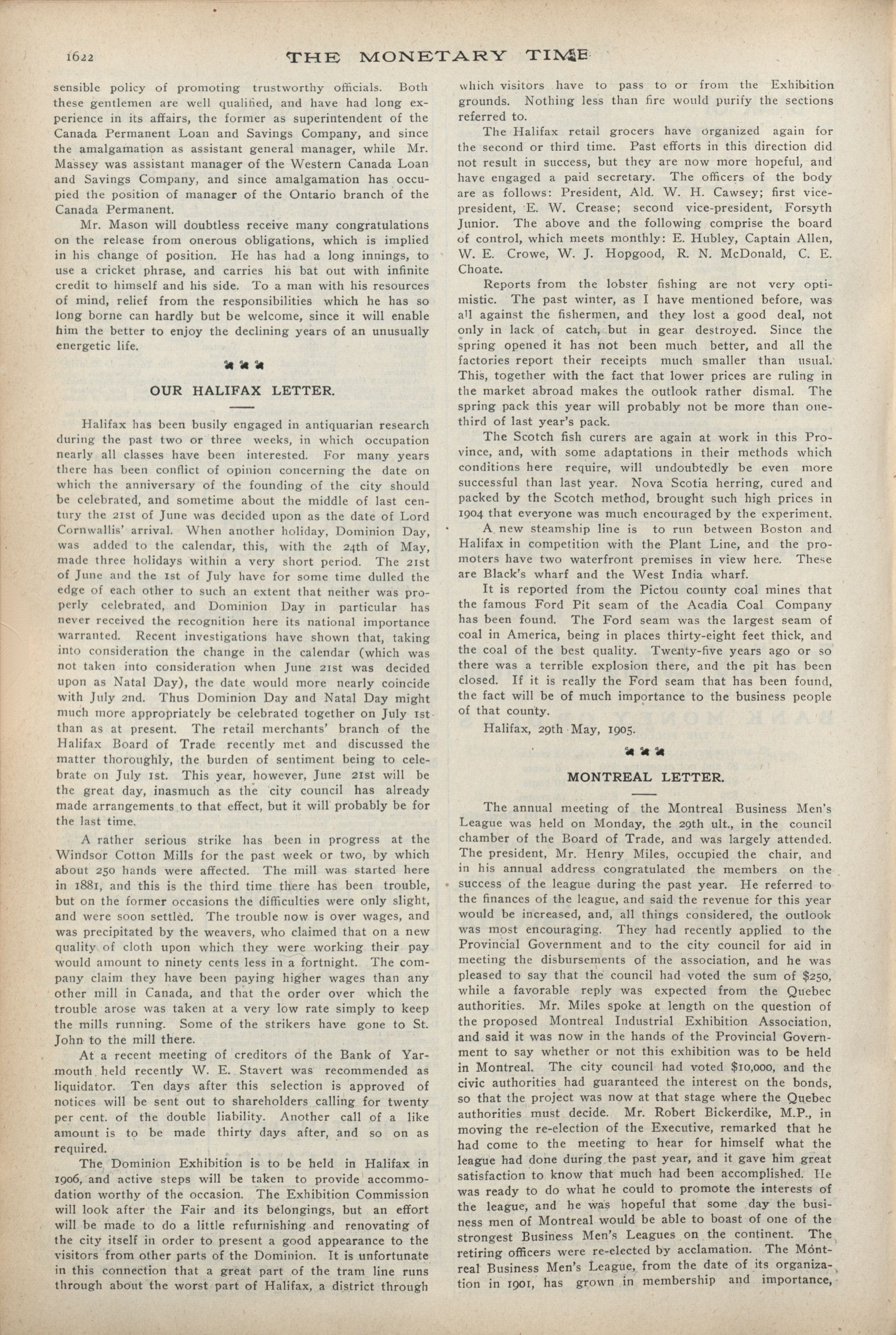 The monetary times, trade review and insurance chronicle : 38th Year No. 49. (June 2, 1905)