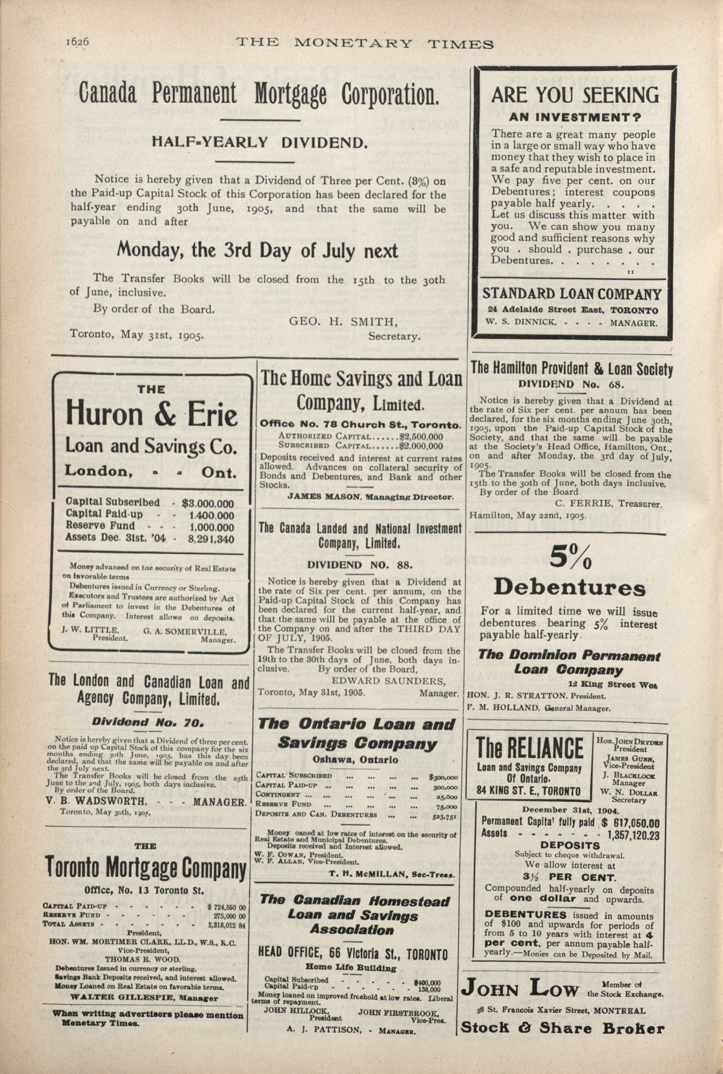 Toronto : [The Monetary Times Printing Co. of Canada, Limited, 1905]; 32 images avec recherche en texte intégral